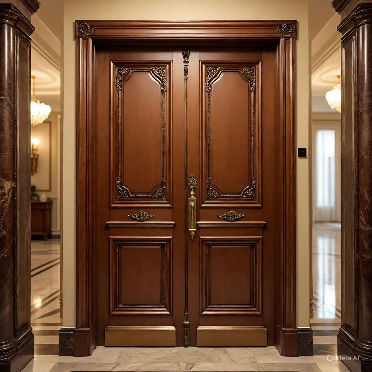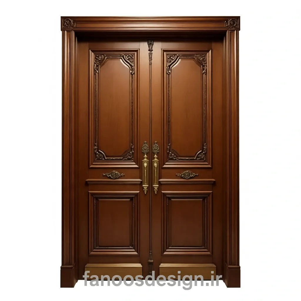 درب دو لنگه چوبی کلاسیک با منبت‌کاری سلطنتی و قاب ستون‌دار کد 30362