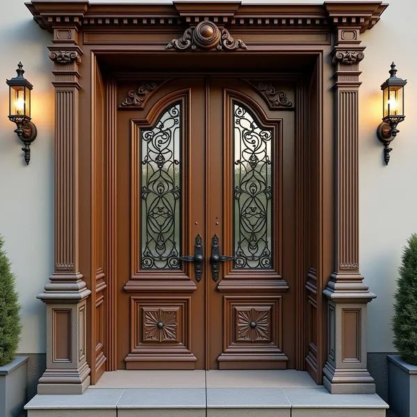 این درب ورودی دو لنگه چوبی با طراحی کلاسیک و تزئینات منبتکاری شده، جلوهای باشکوه به نمای ساختمان شما میبخشد. شیشههای تزئینی با فرفورژههای هنرمندانه نهتنها زیبایی بصری را افزایش میدهند، بلکه امنیت را نیز تضمین میکنند.
