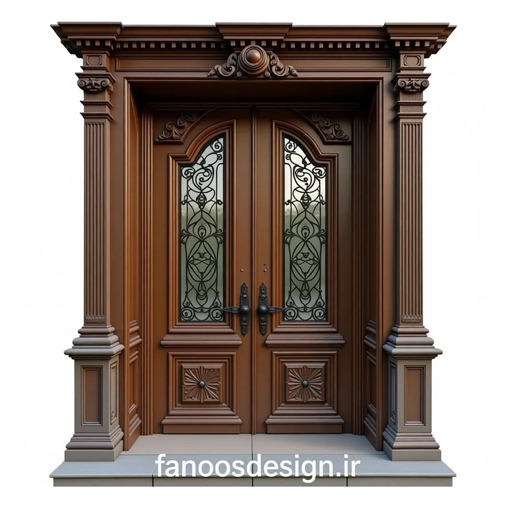 - طراحی کلاسیک با ستونهای کناری و سردر تزئینی
