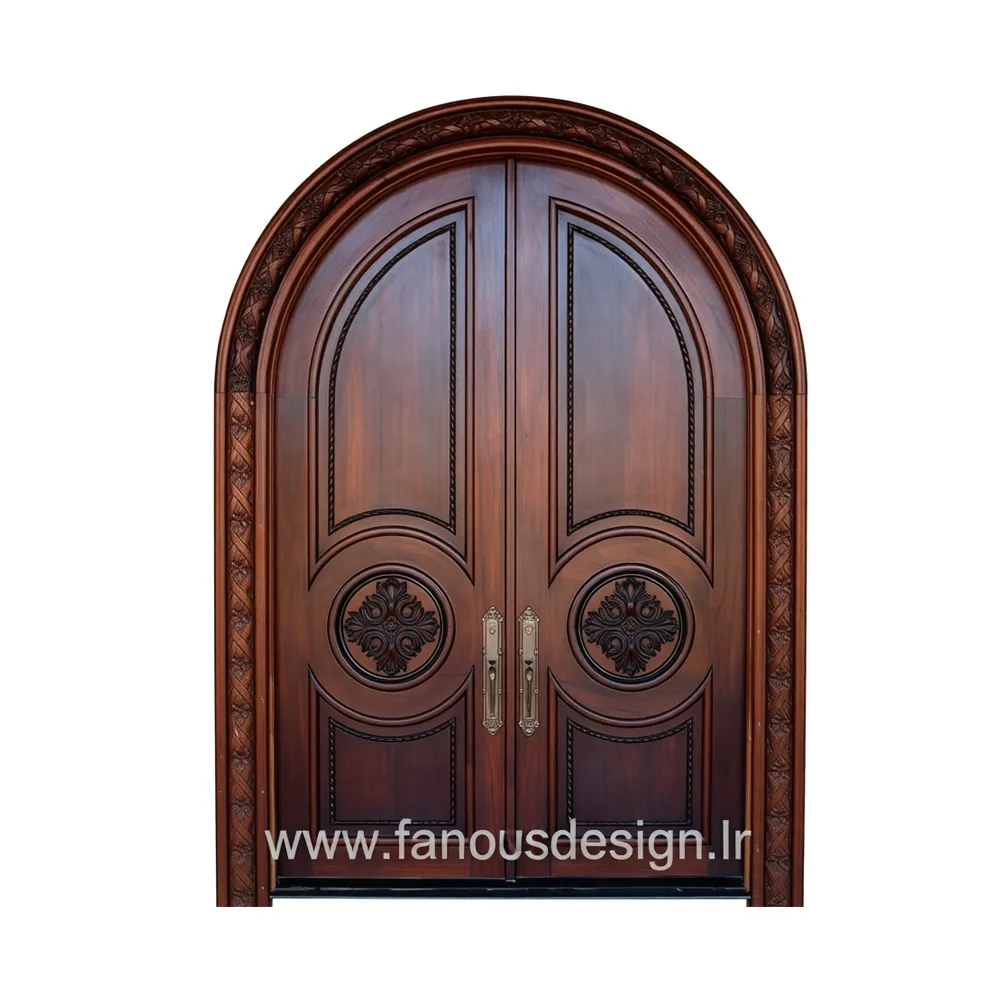 اگر به دنبال درب ورودی لوکس با طراحی کلاسیک هستید، مدل آرککارو انتخابی بینظیر برای شماست. این درب چوبی دو لنگه با منبتکاریهای ظریف، قوس بالایی و دستگیرههای برنجی، جلوهای باشکوه و فاخر به ورودی ساختمان شما میبخشد.