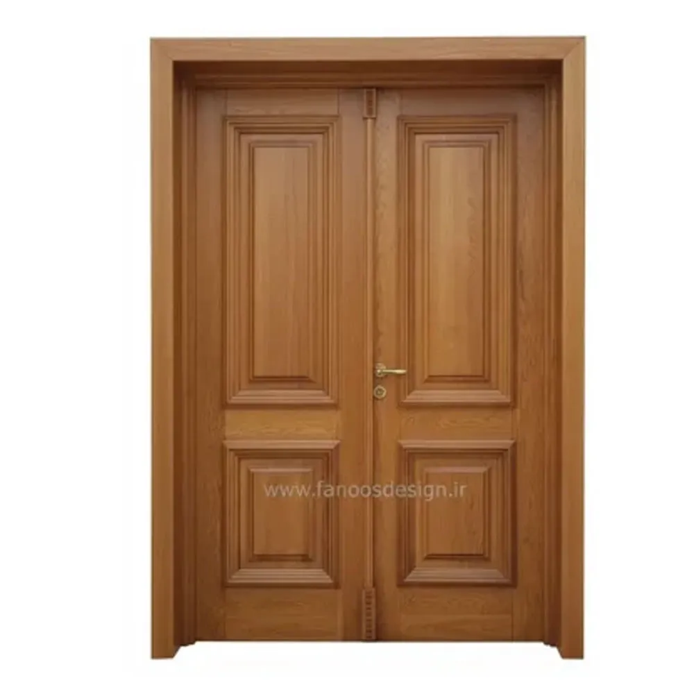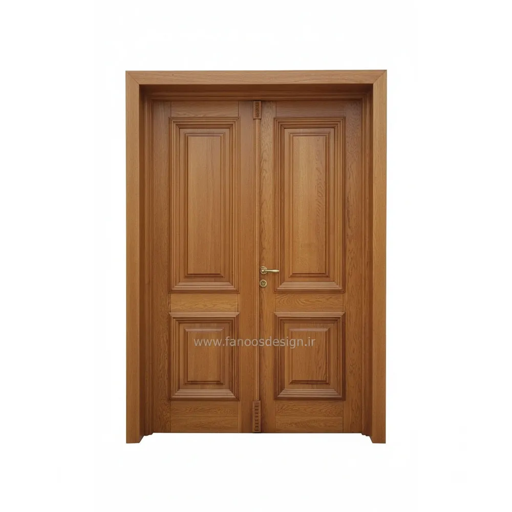 درب چوبی دو لنگه کلاسیک با فریم طبیعی