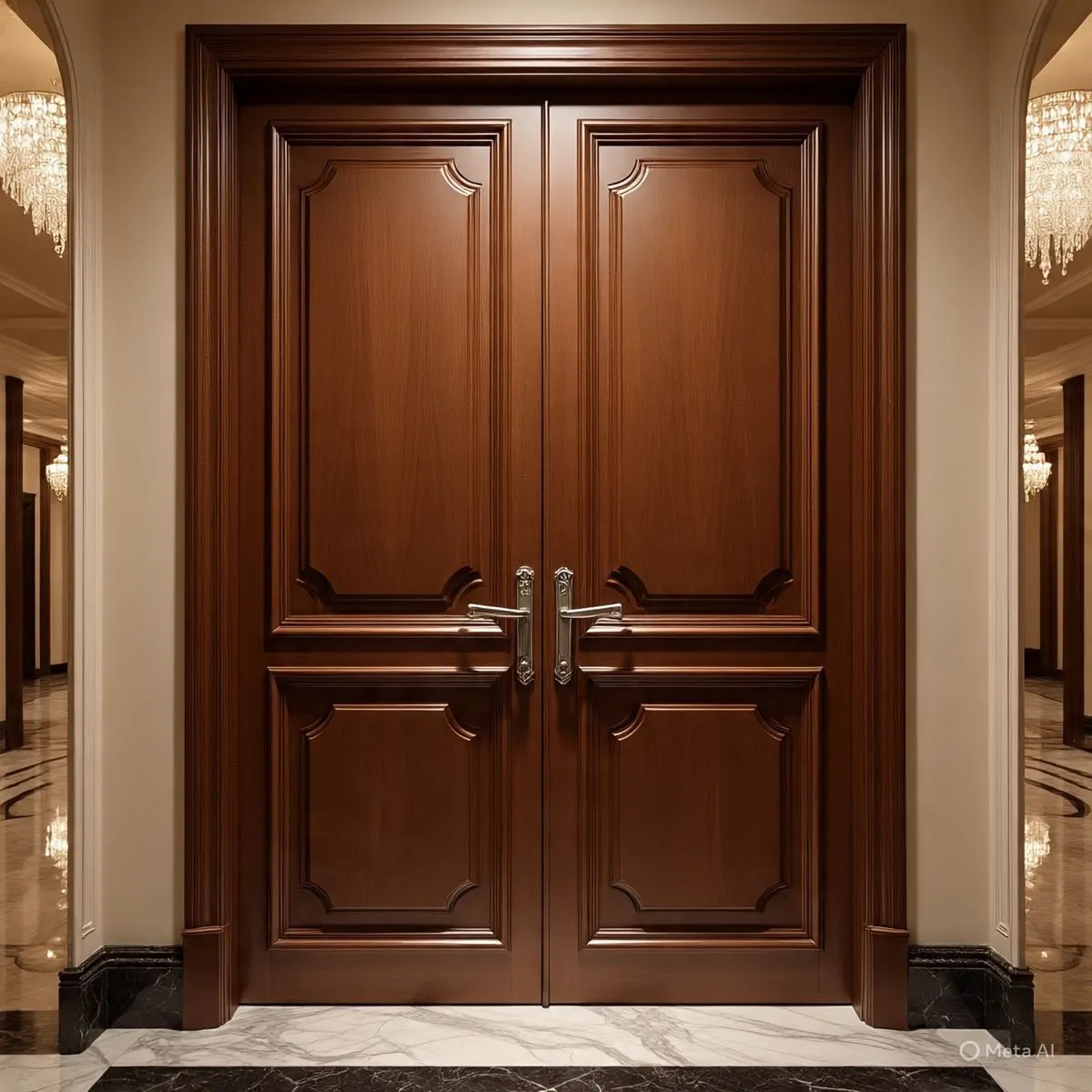 درب چوبی دو لنگه مدل آتریا با طراحی کلاسیک و پنلهای برجسته، انتخابی ممتاز برای فضاهای داخلی لوکس همچون هتلهای پنجستاره، ویلاهای مدرن، سالنهای پذیرایی و عمارتهای مجلل است. این درب با رنگ قهوهای مایل به قرمز و جزئیات هنرمندانه، جلوهای بینظیر به دکوراسیون شما میبخشد.