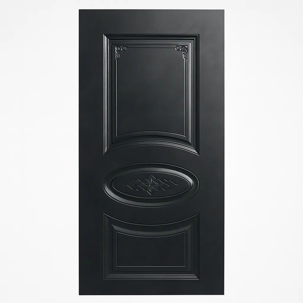 درب مشکی کلاسیک با قاب بیضی و نقش برجسته