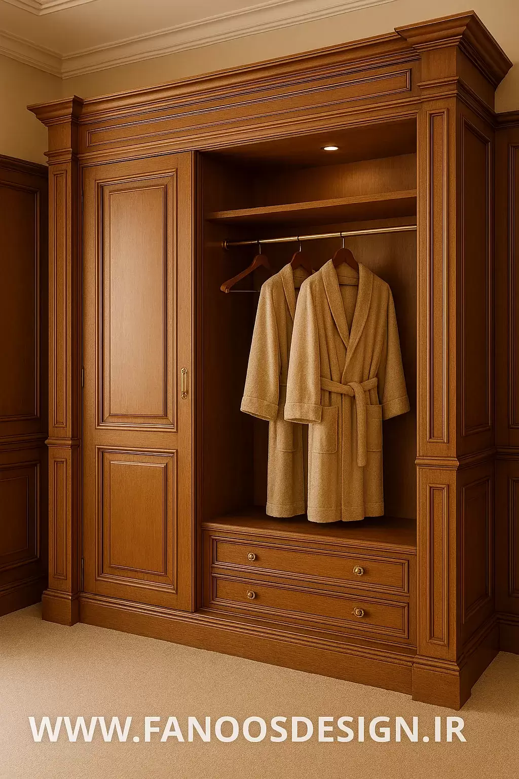 این کمد دیواری کلاسیک برای اتاقهای هتلهای لاکچری طراحی شده است.