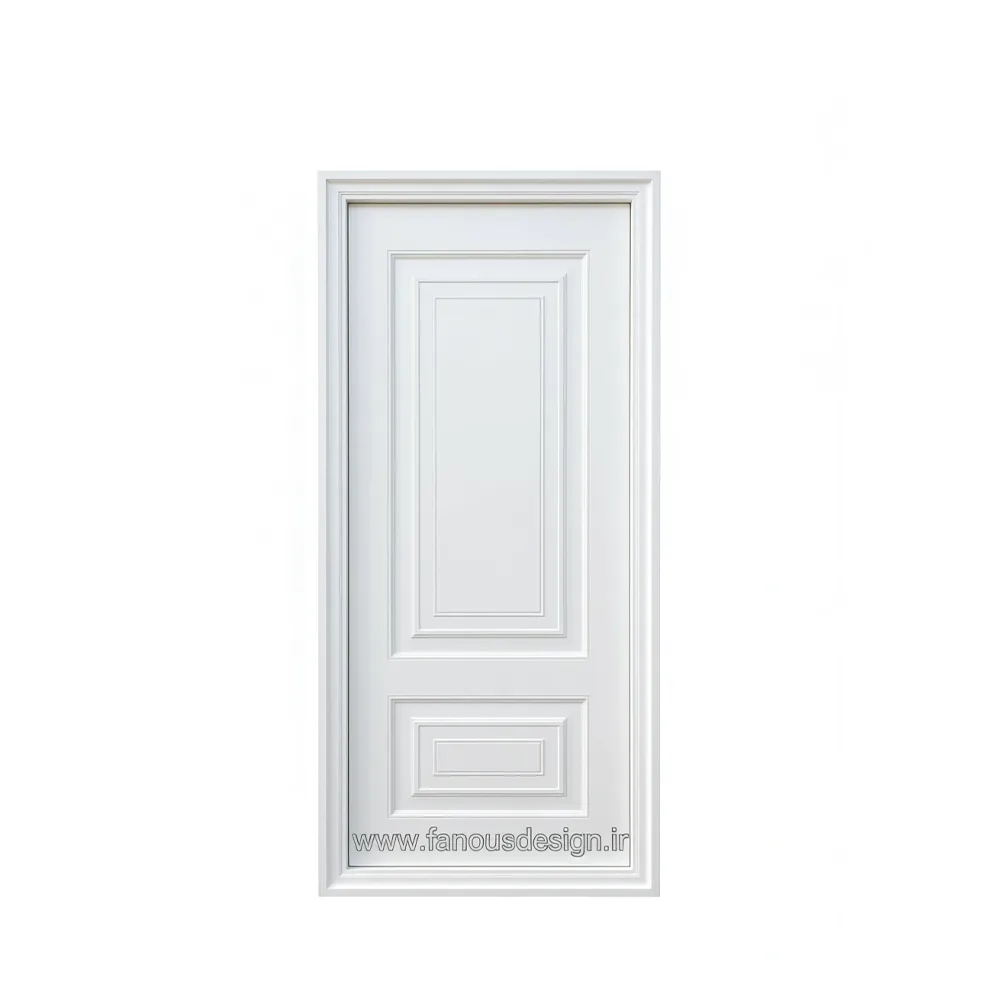 درب داخلی سفید کلاسیک با طراحی پانلدار و نورپردازی مخفی