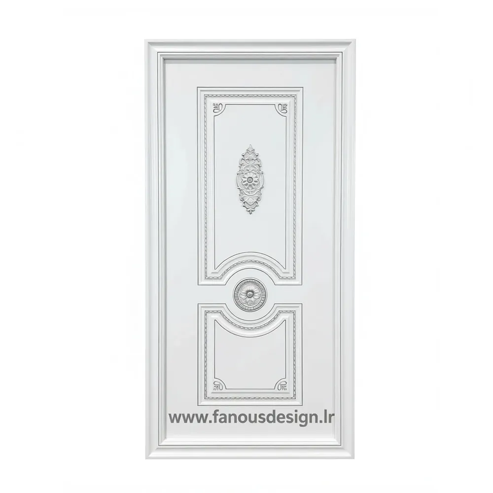 درب کلاسیک سفید با طراحی گلدار و نقش برجسته