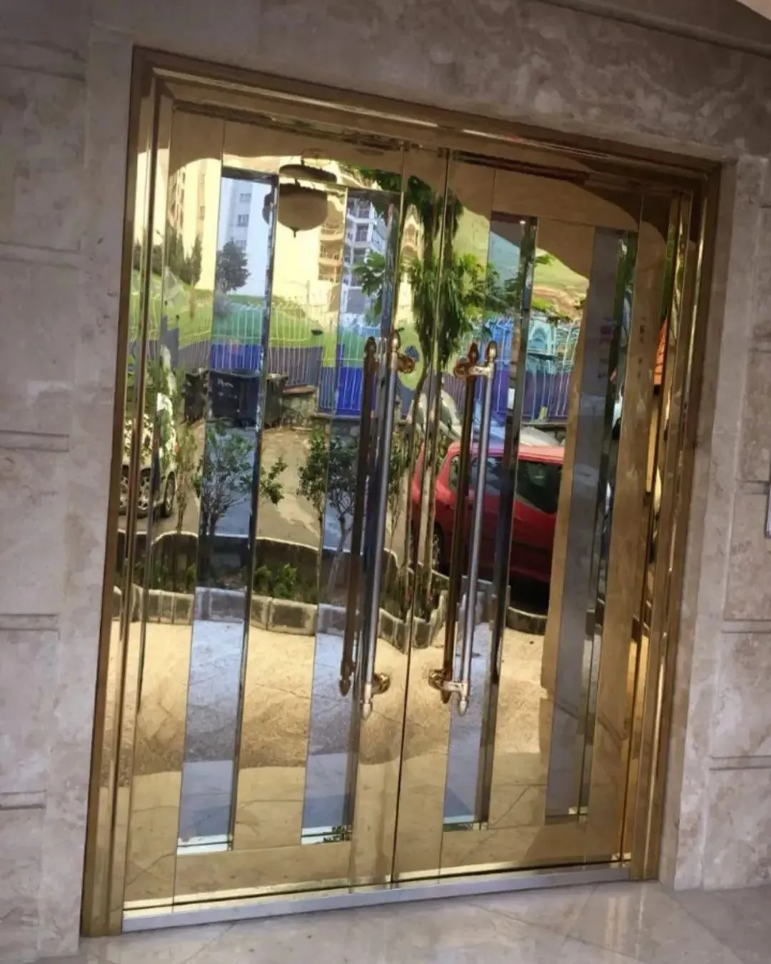 درب استیل طلایی آینه‌ای دو لنگه کد 30219