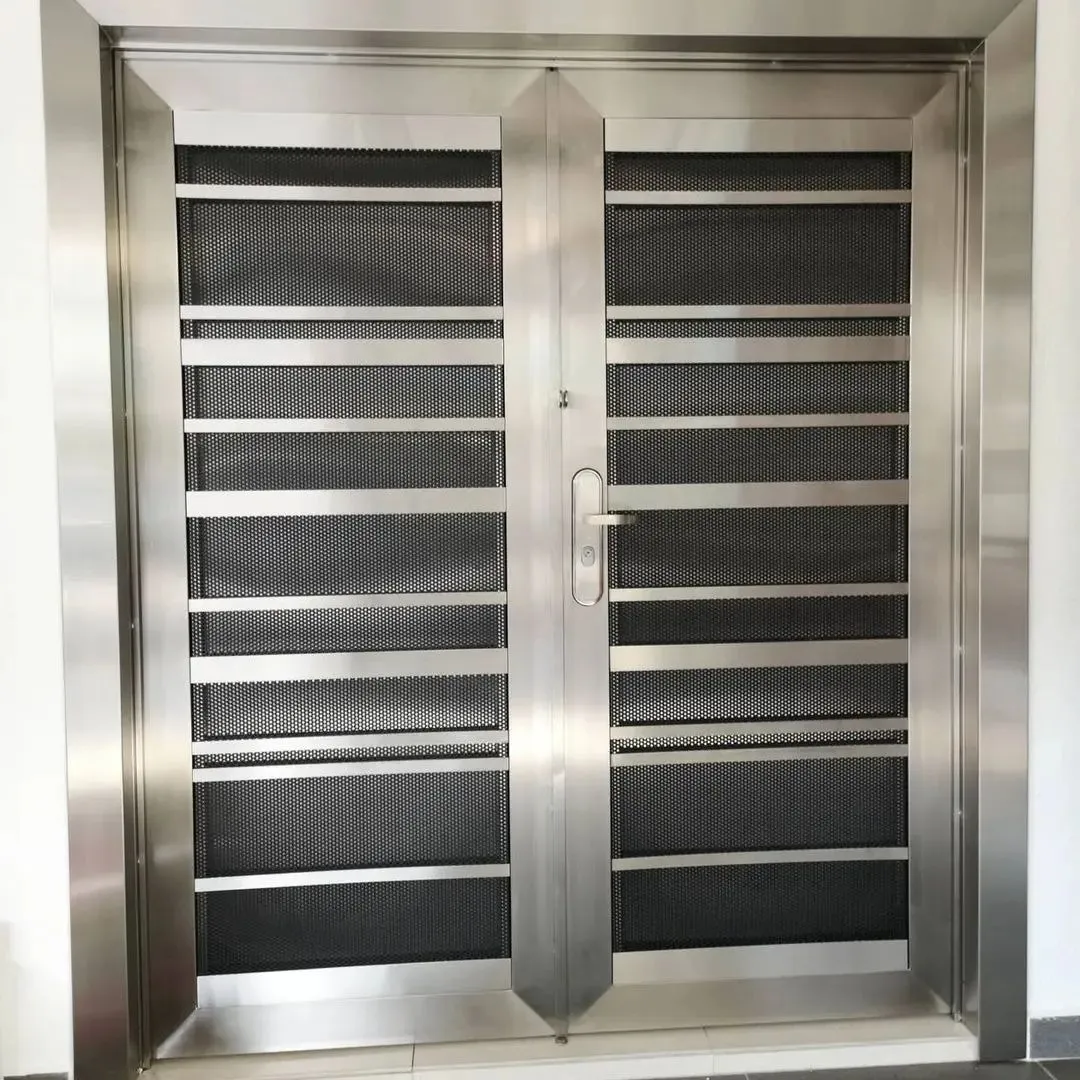 درب استیل دو لنگه یکی از محبوبترین مدلها برای ورودی ساختمانهای مدرن و لوکس است. این درب با استفاده از ورق استیل مقاوم و شبکه مشدار مشکی طراحی شده تا ضمن حفظ امنیت، زیبایی چشمگیری نیز داشته باشد.