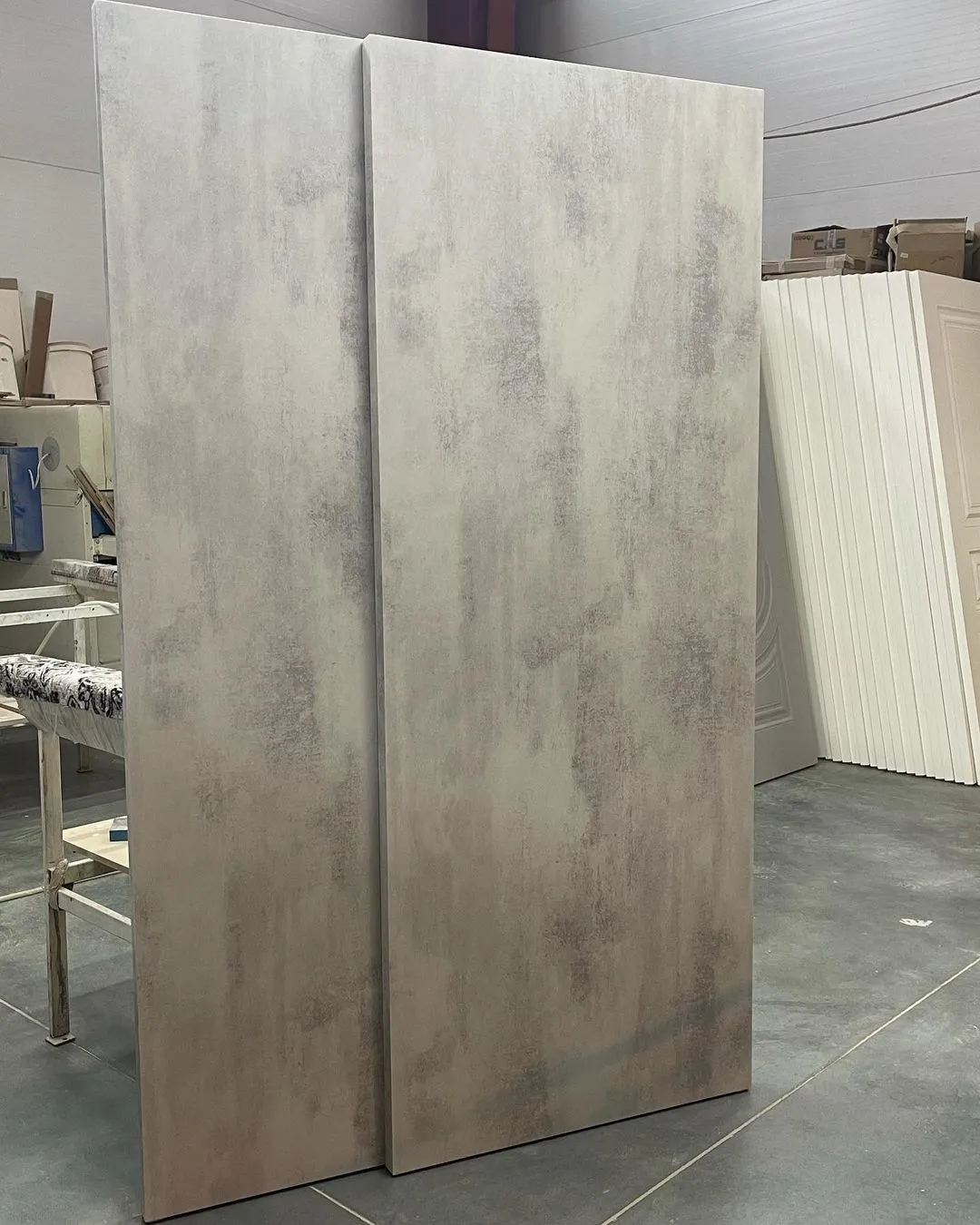 روکش بتنی این درب با بافت طبیعی و رنگ طوسی مات، فضایی خاص و متفاوت در محیط ایجاد میکند.
