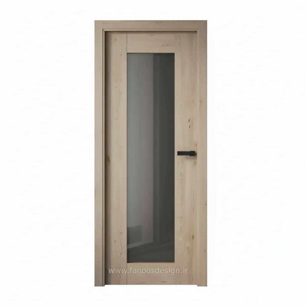 درب MDF روکش چوبی روشن با شیشه مشکی