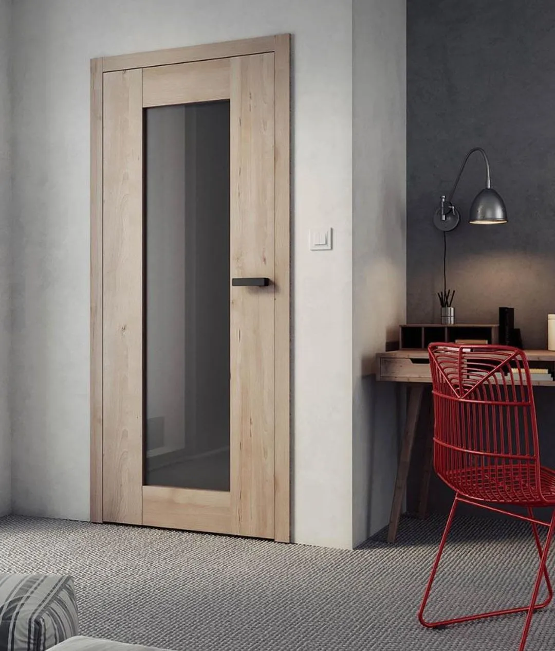 درب MDF طرح چوب روشن با شیشه مشکی یکی از مدلهای مدرن و خاص فانوس دیزاین است که با ترکیب بافت طبیعی چوب و شیشه دودی، ظاهری زیبا، لوکس و همزمان مینیمال ایجاد میکند. این مدل برای افرادی طراحی شده که به دنبال فضایی گرم، طبیعی و در عین حال مدرن هستند.