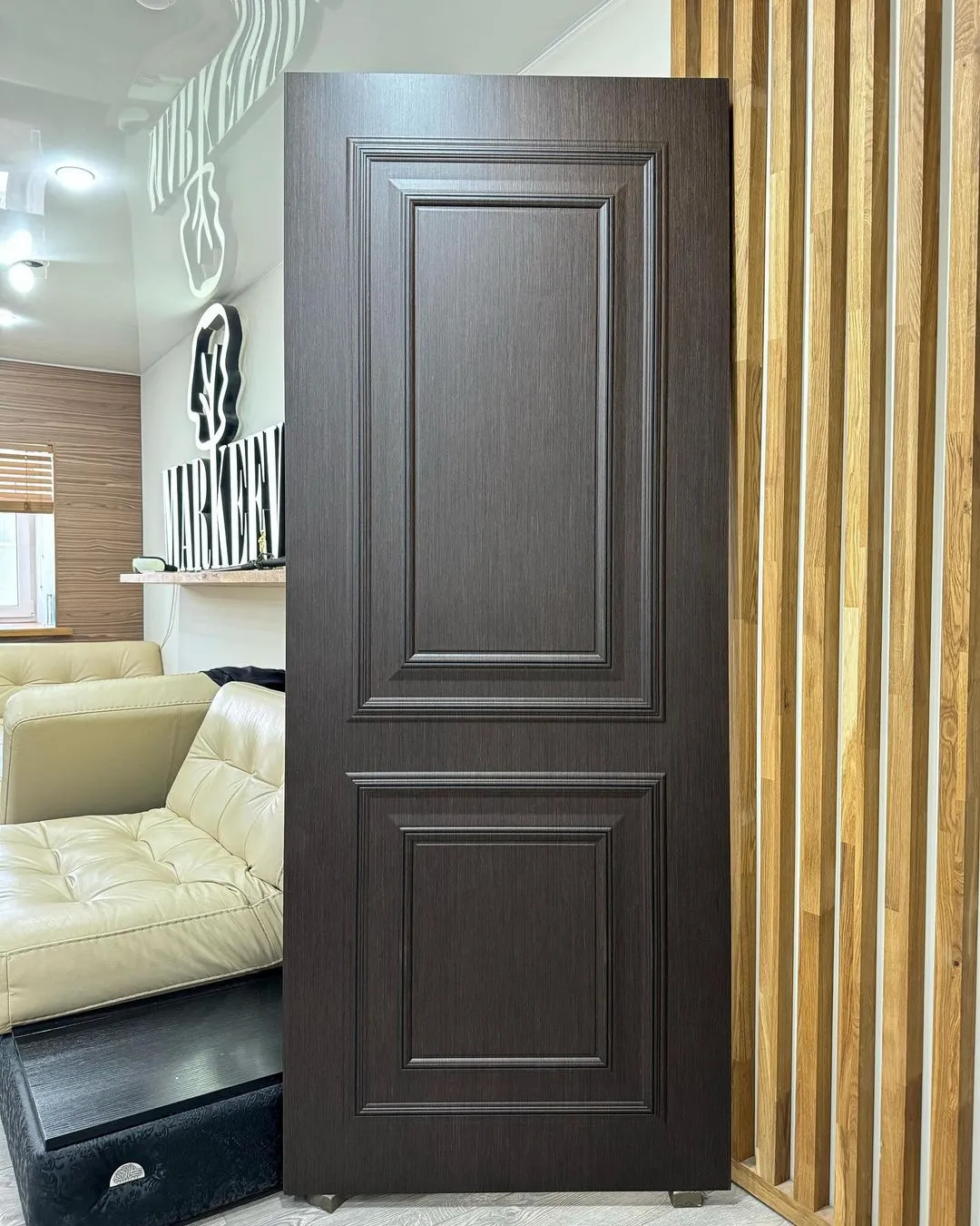 درب چوبی لوکس، درب داخلی مدرن، درب پنلدار، درب کلاسیک، درب قهوهای تیره، درب مناسب دکوراسیون داخلی، درب برای نشیمن، درب برای اتاق خواب، درب با طراحی تزئینی، درب با قابکاری چوبی