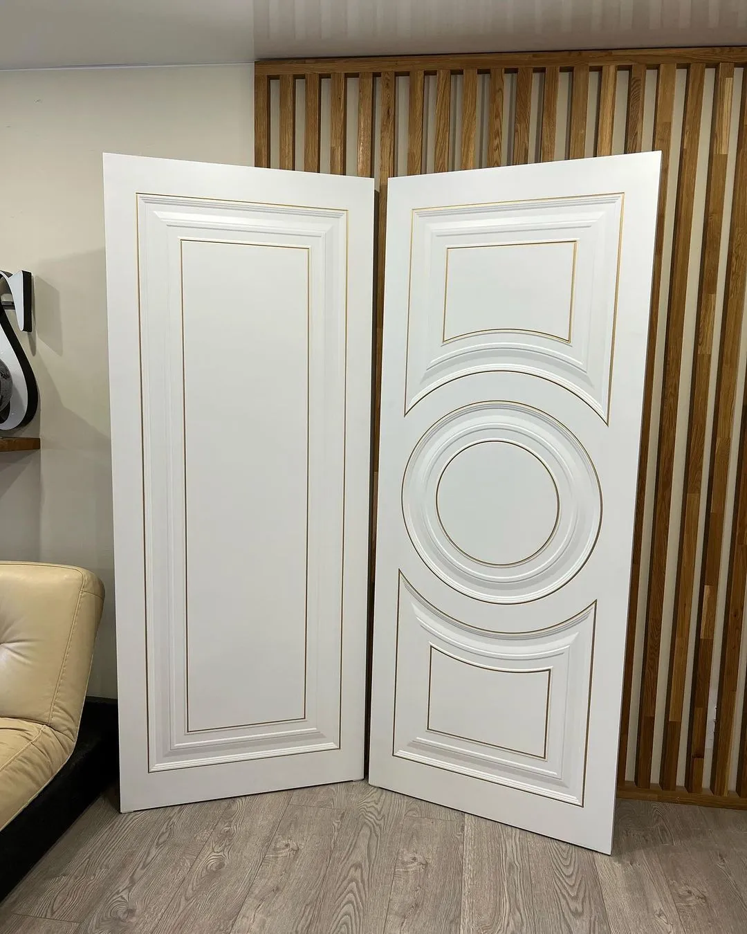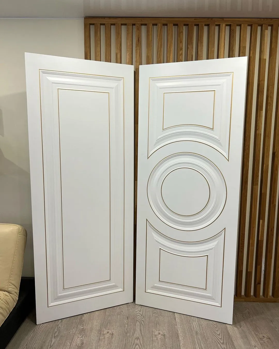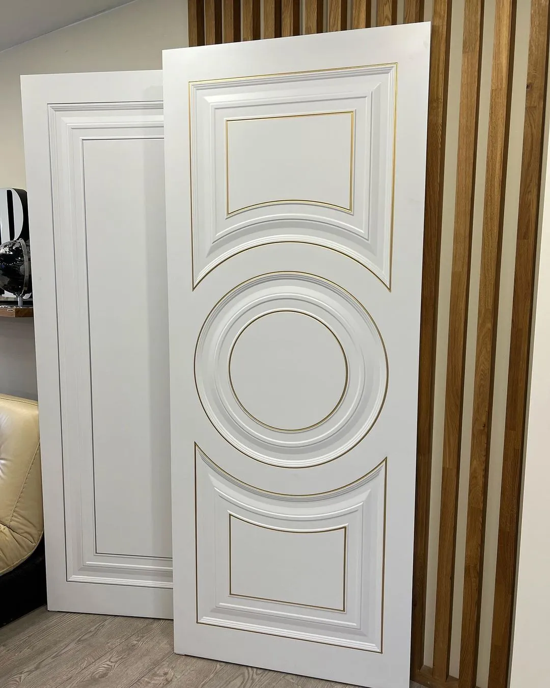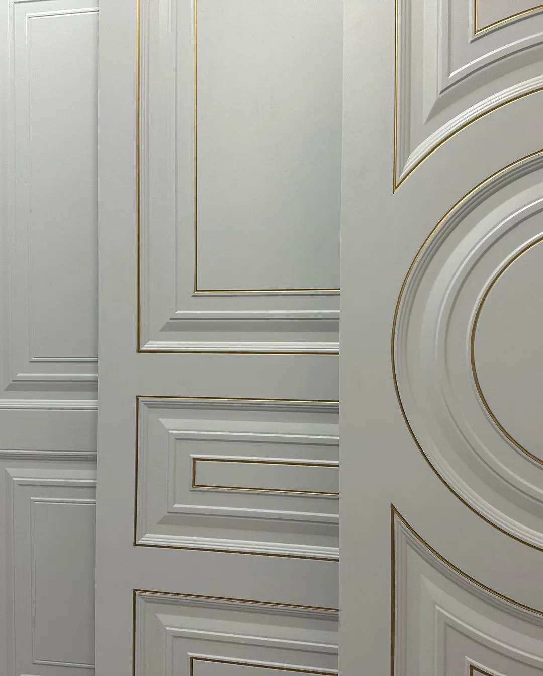 درب سفید کلاسیک مدل آوان با قاب برجسته و خطوط طلایی