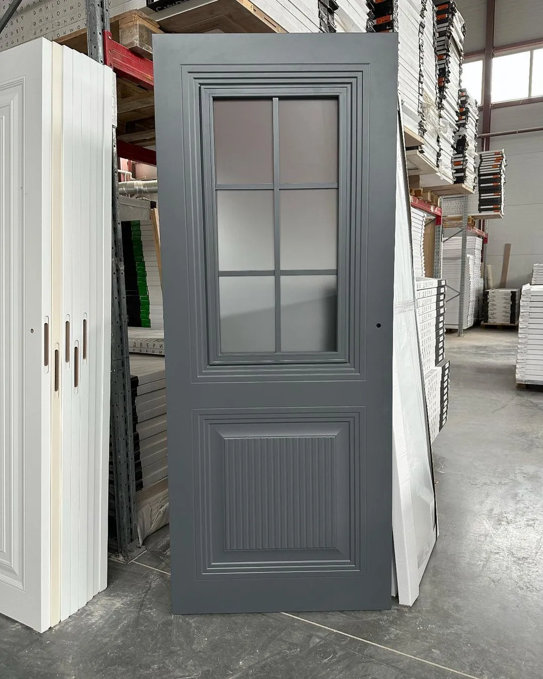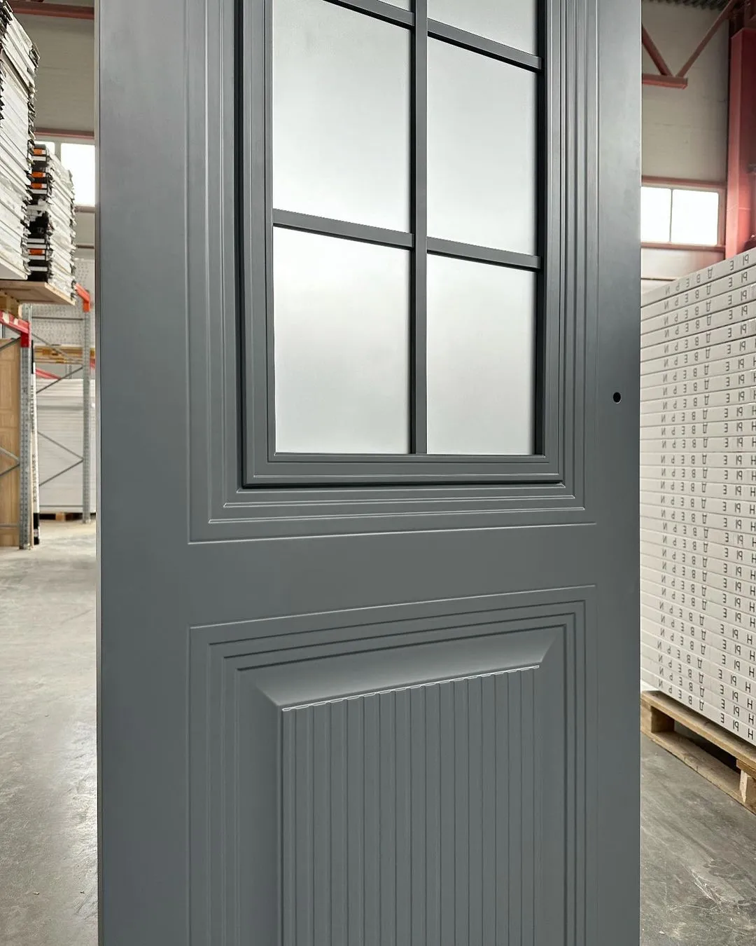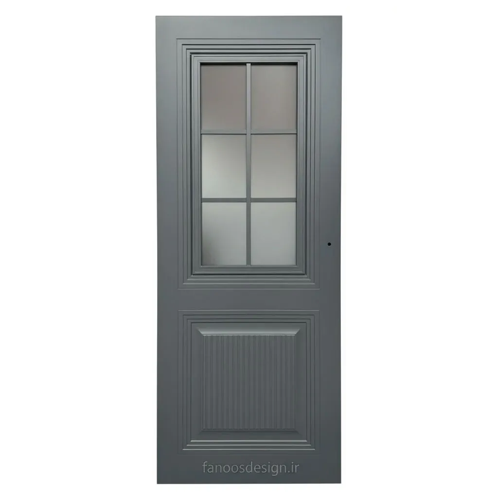 درب لوکس طوسی با طراحی کلاسیک و پنجره ششقسمتی