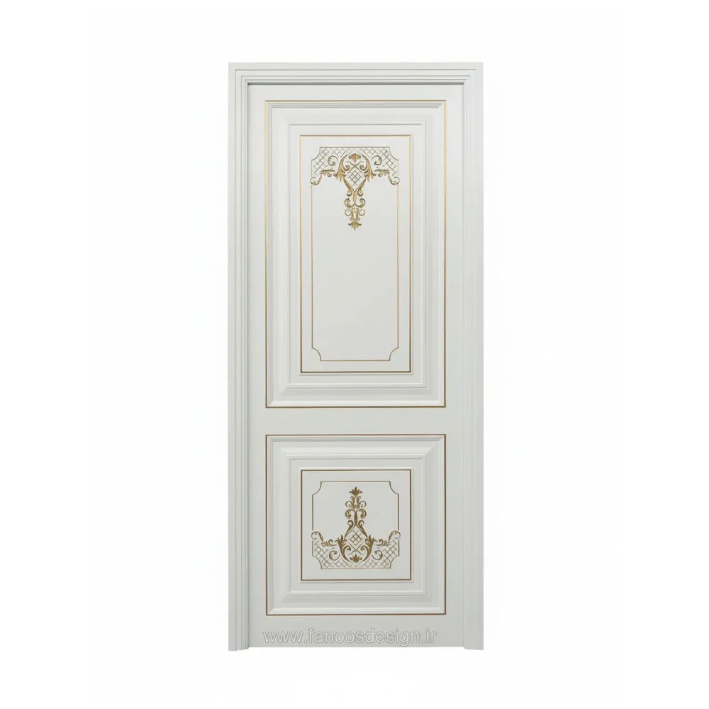 درب سفید کلاسیک با تزئینات طلایی – جلوهای از شکوه و هنر