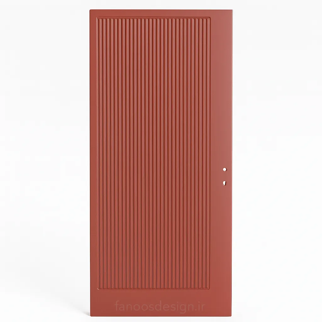 شیارهای عمودی این درب باعث کشیدهتر دیده شدن فضا و ایجاد حس ارتفاع میشوند. رنگ قهوهای مات در کنار طراحی مینیمال، تعادل و گرمای بصری خاصی به محیط اضافه میکند و میتواند با کفپوش چوبی یا دیوارهای روشن ترکیب بینقصی ایجاد کند.
