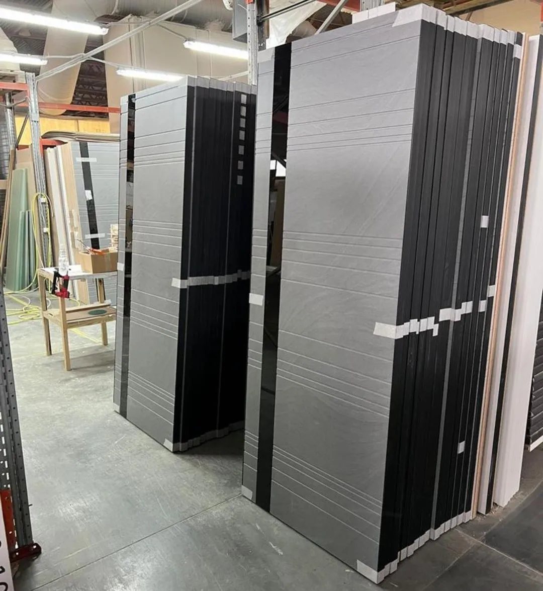 درب MDF طوسی مشکی مدرن طرح شیار افقی کد 30291