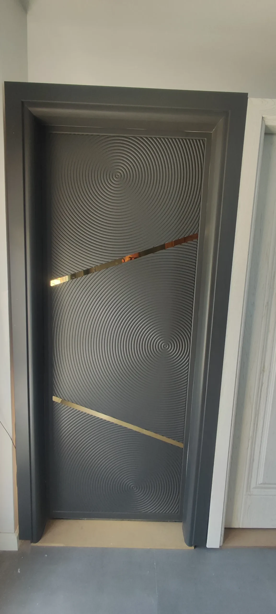 درب طوسی تیره مدرن با طرح دایره‌ای و نوار طلایی کد 30253