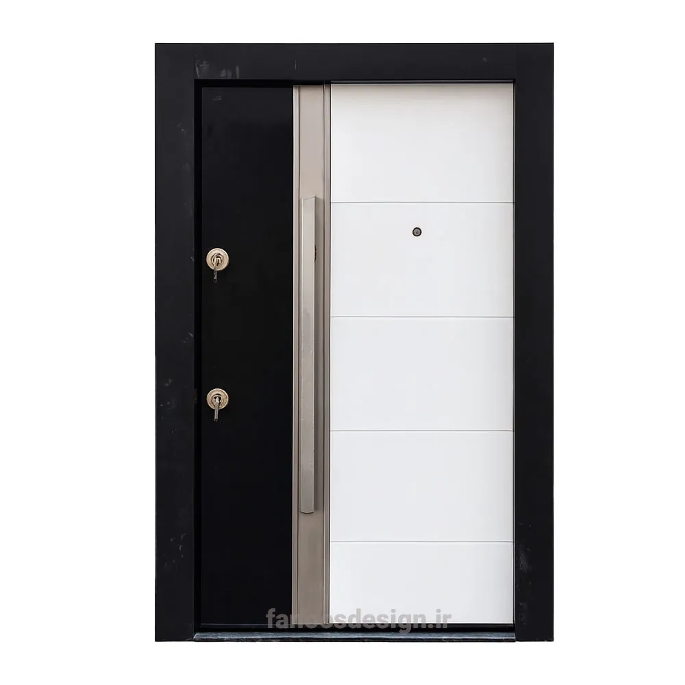 این درب برای دکوراسیون داخلی مدرن، فضاهای مینیمال، ورودی ساختمانهای لوکس و دفاتر کاری با طراحی خاص بسیار مناسب است. ترکیب رنگ سفید و مشکی، هماهنگی بینظیری با انواع کفپوش سنگی و دیوارهای روشن ایجاد میکند.