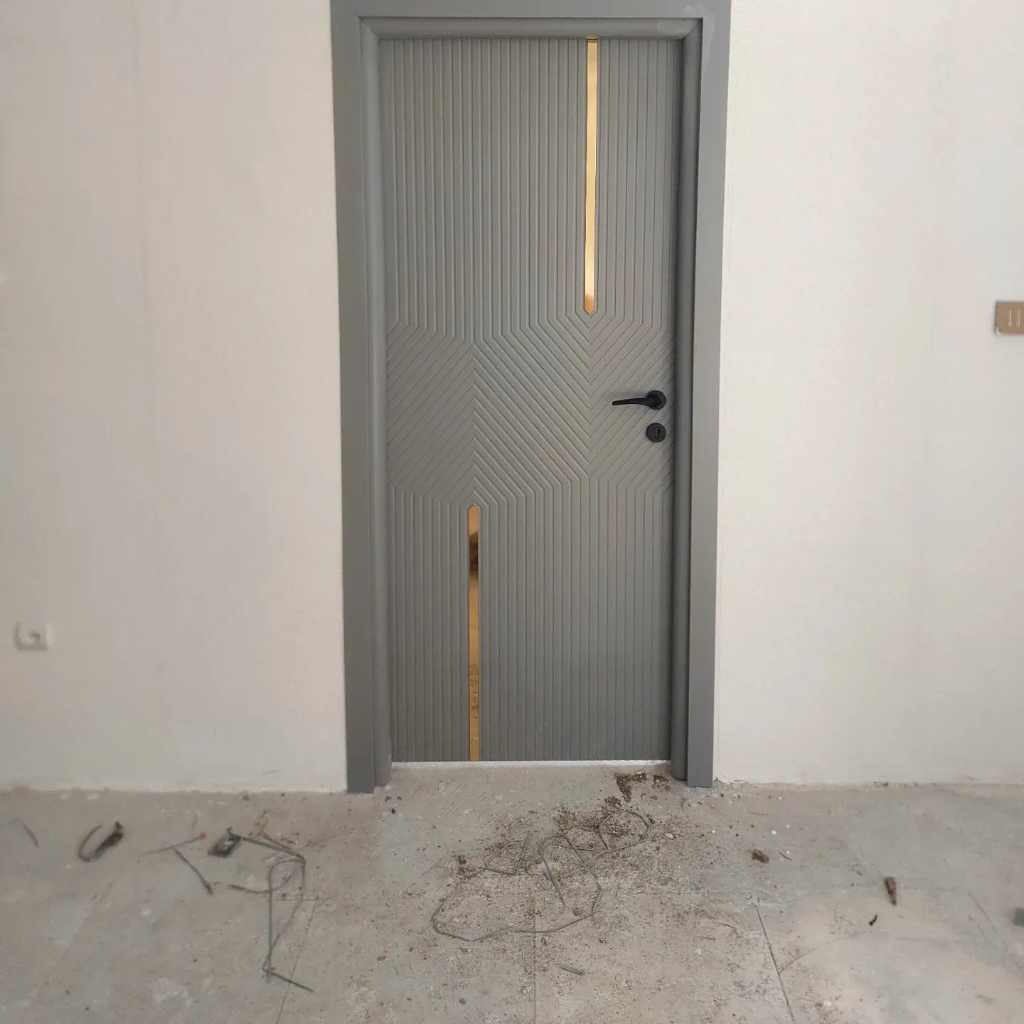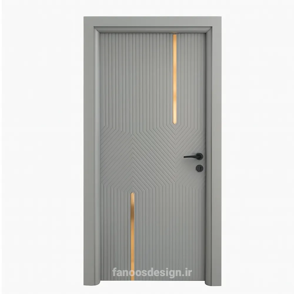 این درب مدرن با رنگ طوسی مات و طراحی هندسی خاص، انتخابی بینظیر برای ورودی خانه، آپارتمان یا محل کار شماست. دو نوار شیشهای عمودی با رنگ طلایی، جلوهای لوکس و نورگیر به فضا میبخشند.