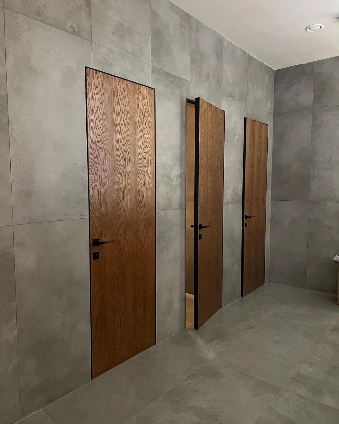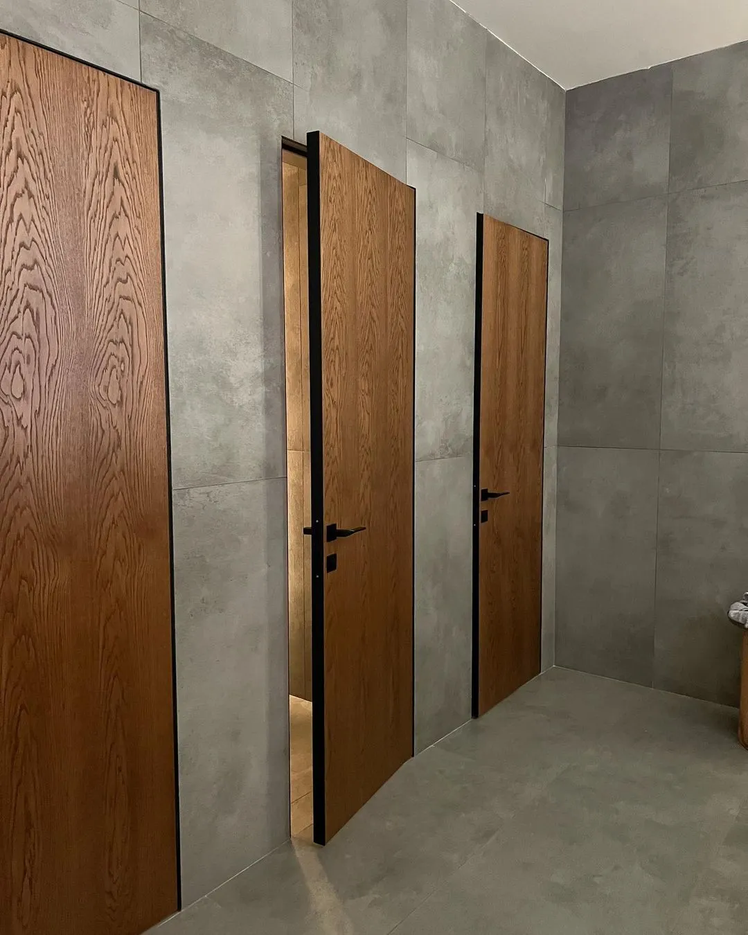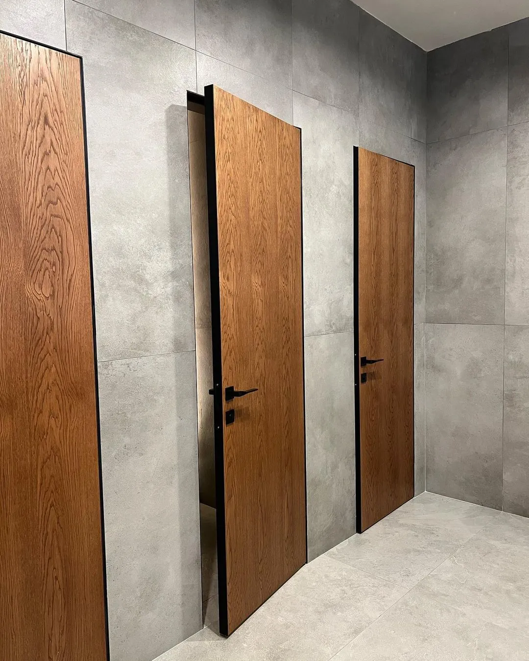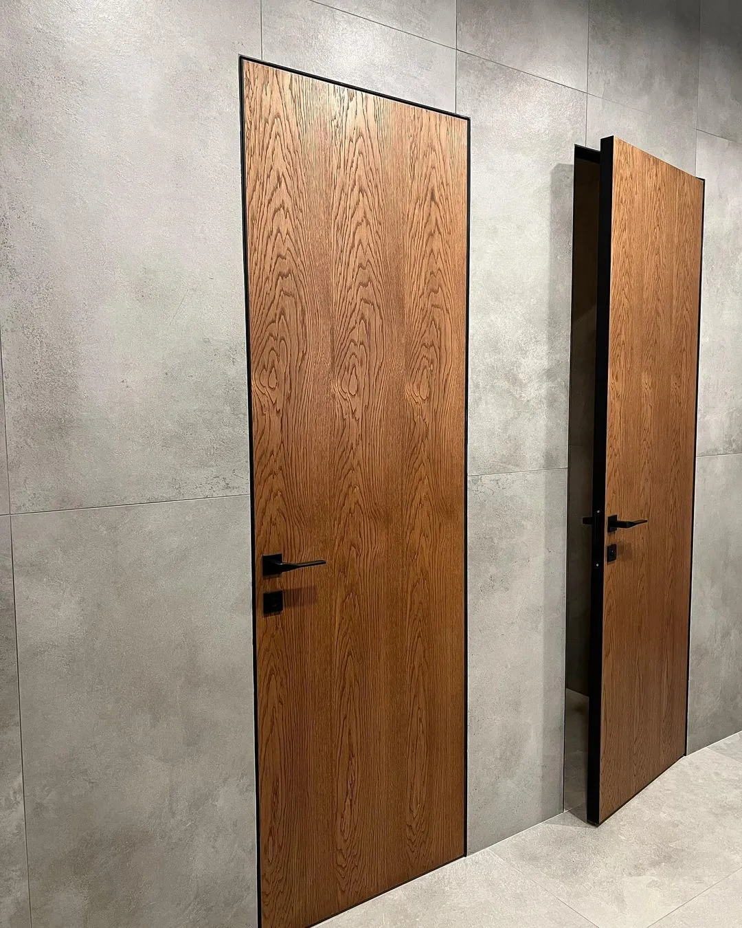 این درب انتخابی عالی برای اتاق خواب، نشیمن، دفاتر کاری و فضاهای داخلی مدرن است. ترکیب رنگ گرم چوب با دیوارهای سرد خاکستری، تضادی چشمنواز و حرفهای ایجاد میکند.