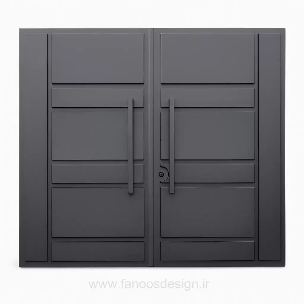 درب حیاط آهنی دو لنگه مدرن مشکی مات