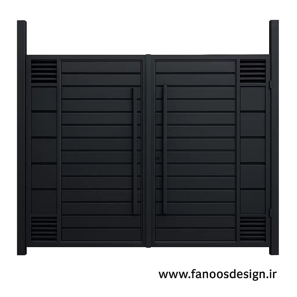 این مدل درب حیاط فلزی با طرح شیار افقی و رنگ مشکی مات، ترکیبی از استحکام، زیبایی و سادگی است.