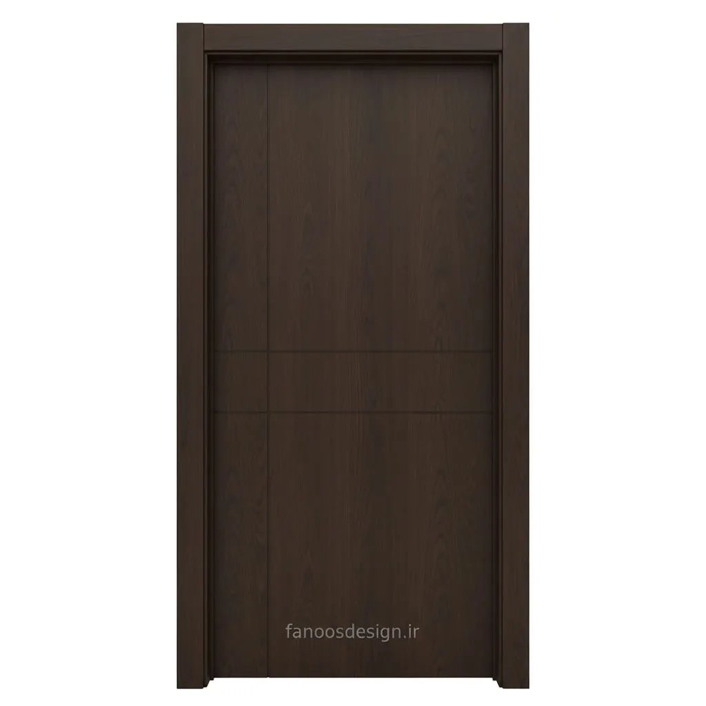 درب به صورت فلت و بدون قاب طراحی شده و با خطوط افقی ظریف، حس نظم و سادگی را القا میکند. استفاده از چوب طبیعی با رنگ تیره، علاوه بر زیبایی، دوام و استحکام بالایی را تضمین میکند.