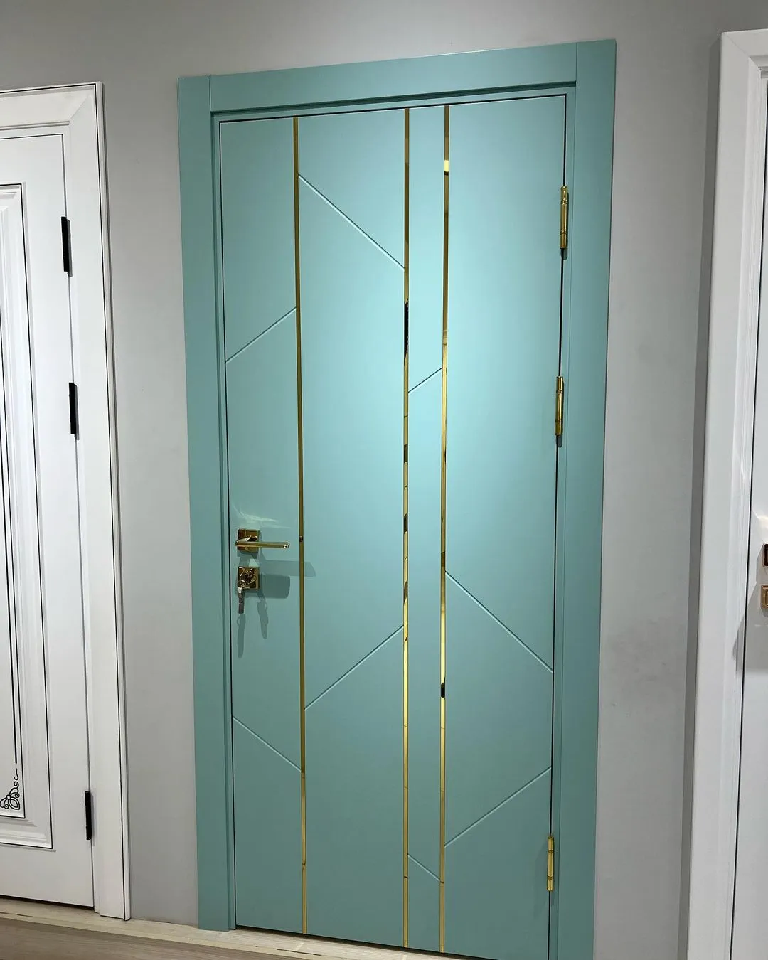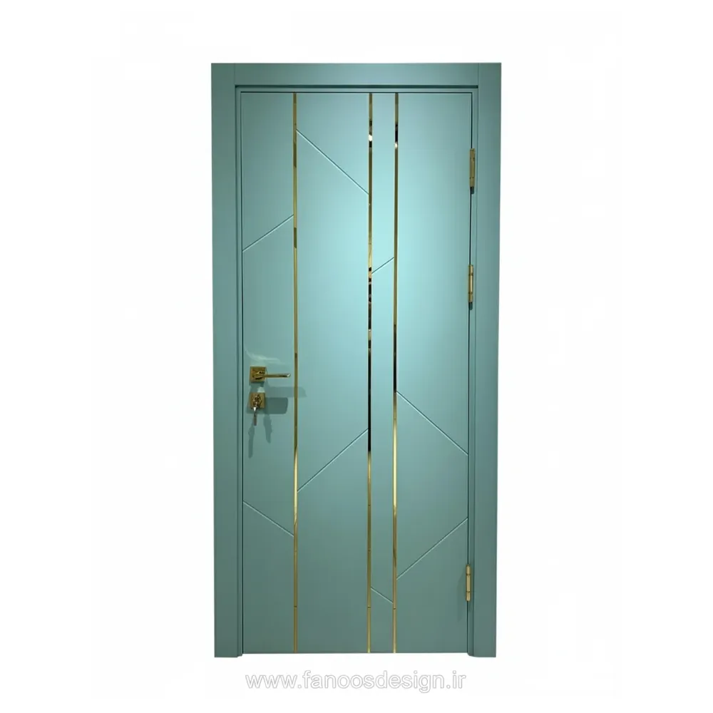 درب اتاقی مدرن فیروزهای با نوار طلایی دکوراتیو