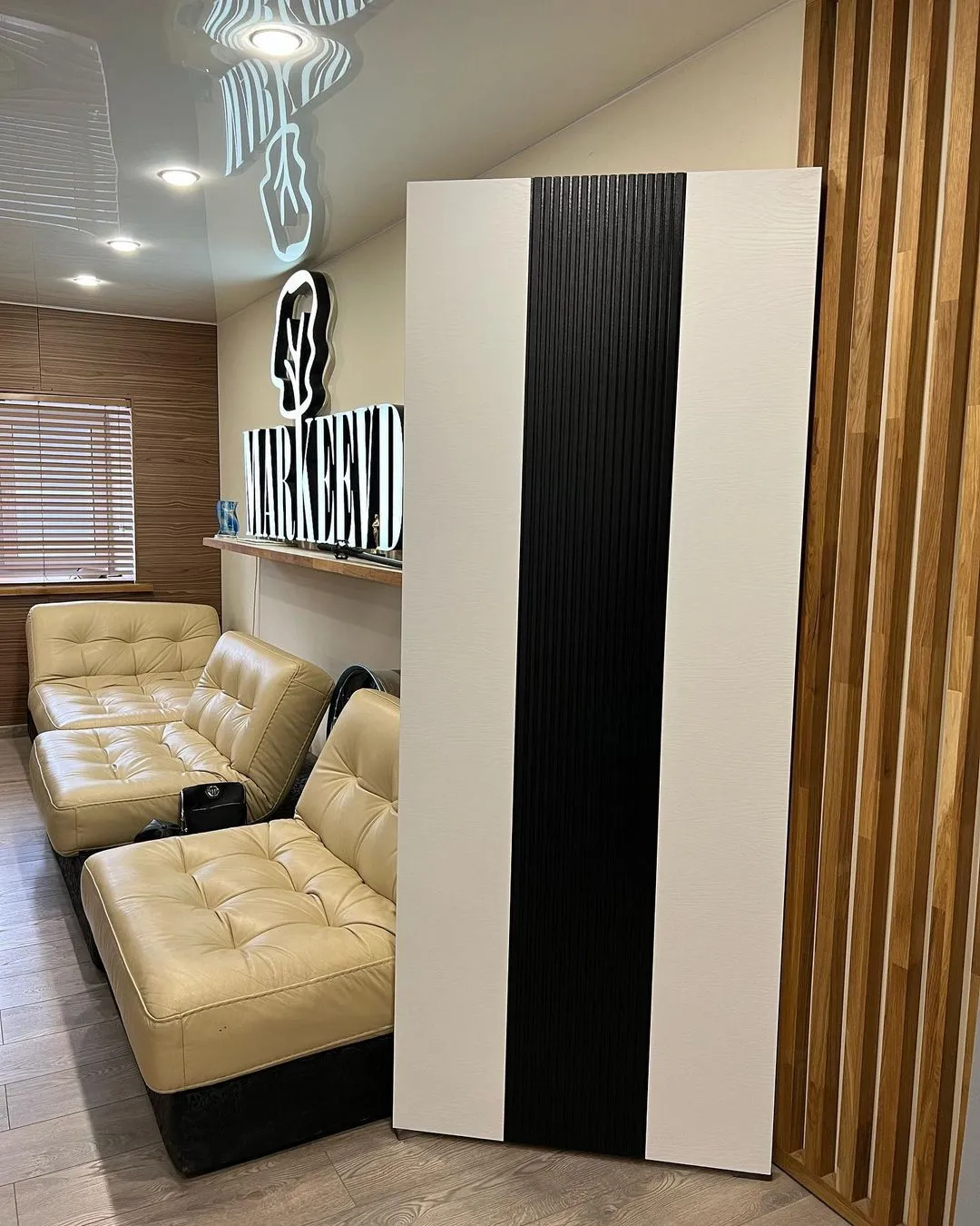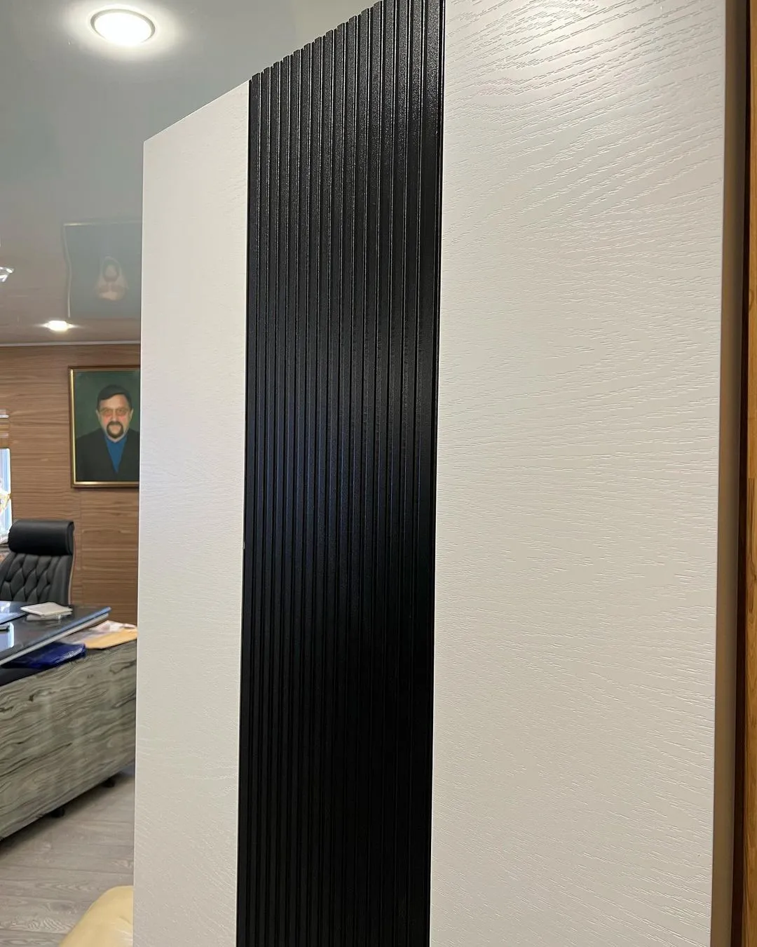 این درب با الهام از سبکهای مینیمال و مدرن طراحی شده و با خطوط ساده و رنگهای خنثی، حس آرامش و نظم را به فضا منتقل میکند. نوار مشکی مرکزی، نقطه تمرکز بصری ایجاد کرده و به فضا عمق میبخشد.
