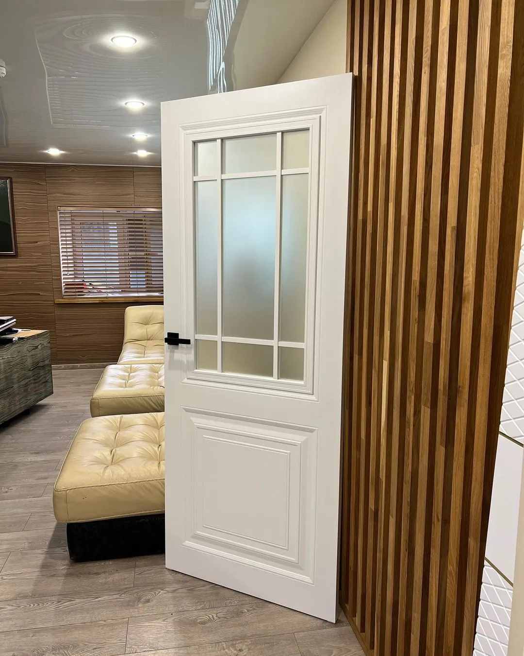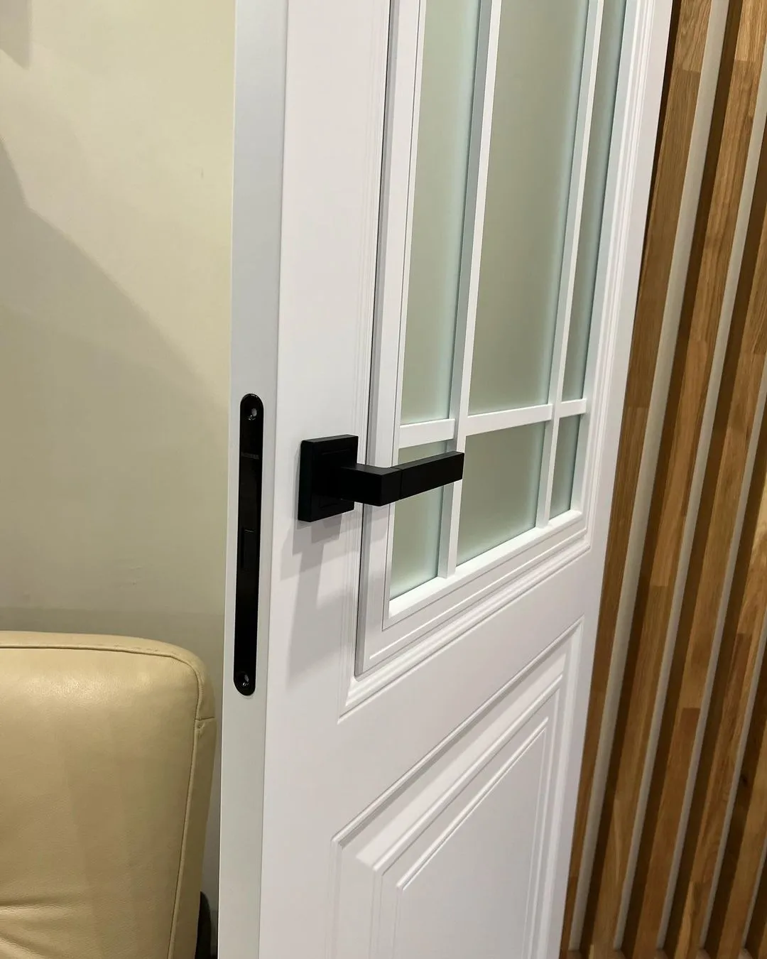 - طراحی شیشه: شیشه مات با تقسیمبندی ششقسمتی توسط مونتینهای سفید