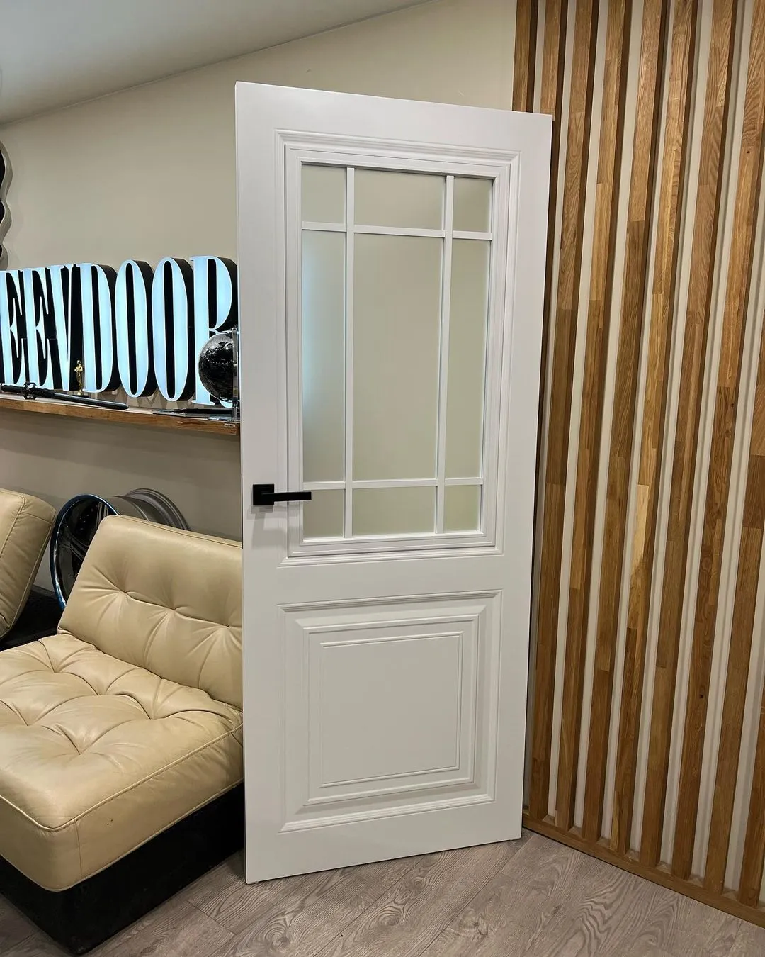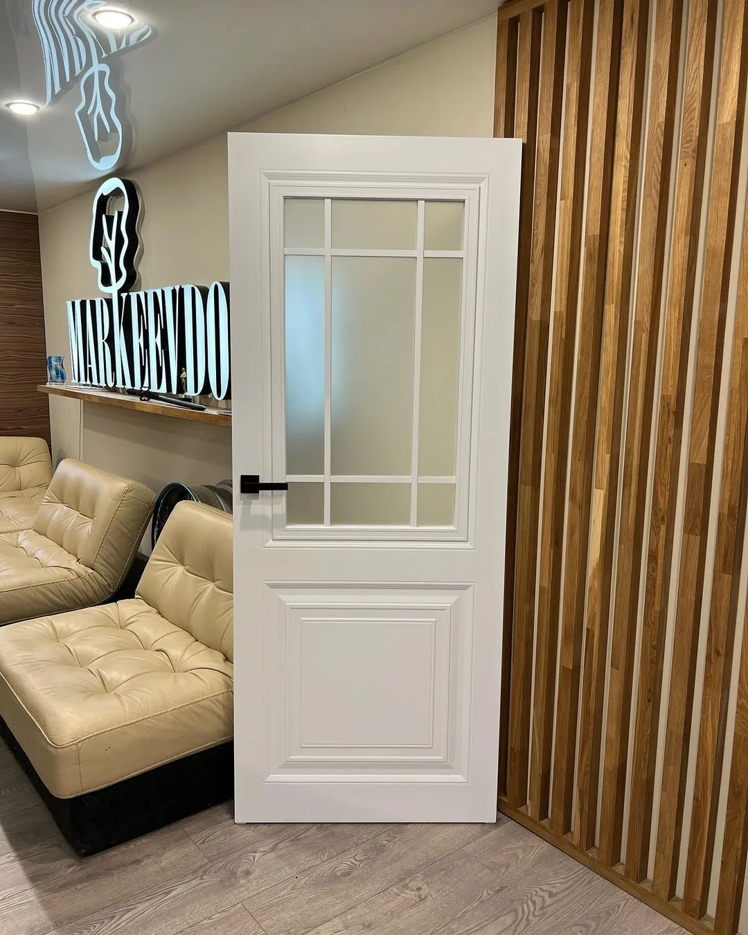 درب سفید مدرن مدل مارکیوو با شیشه مات