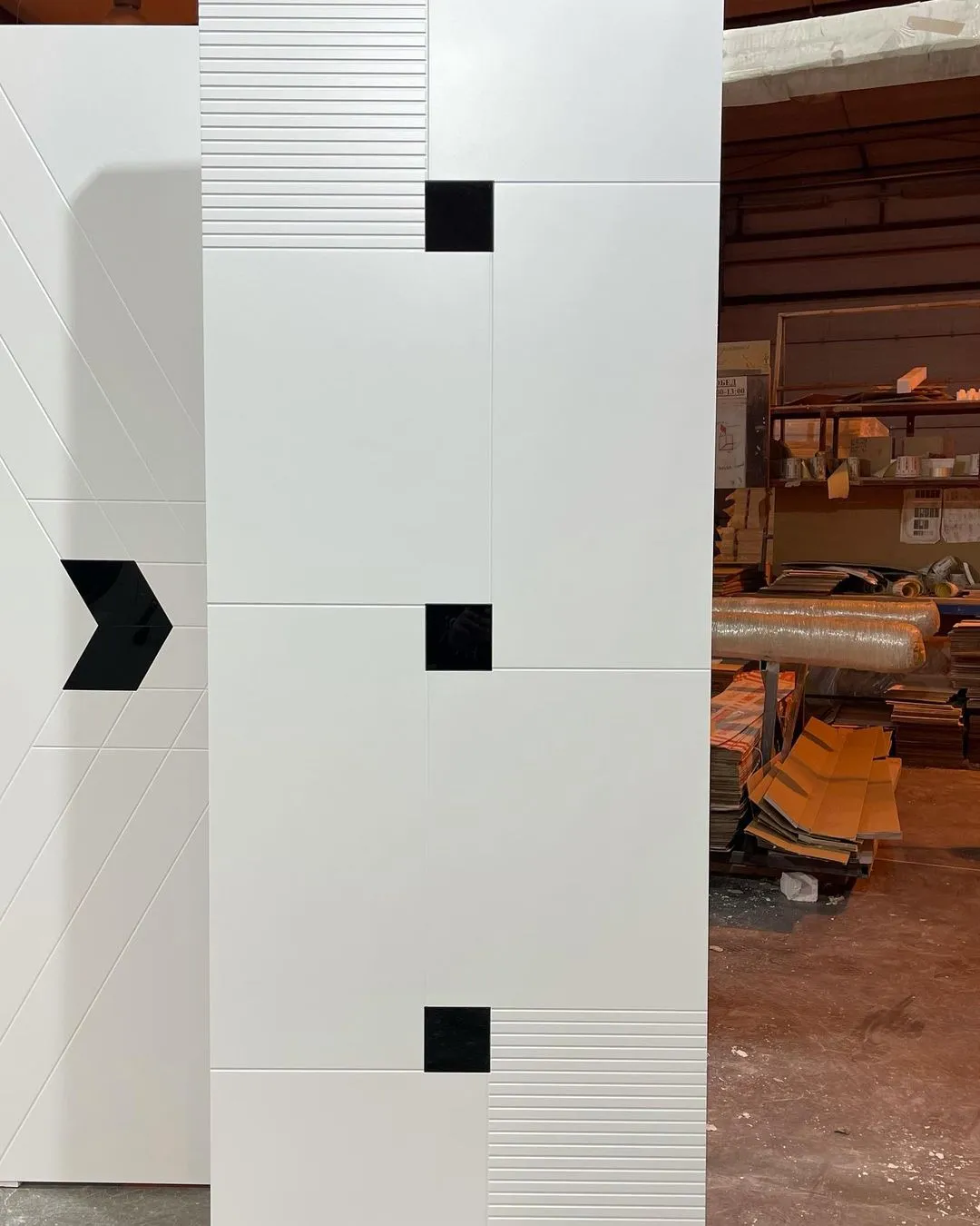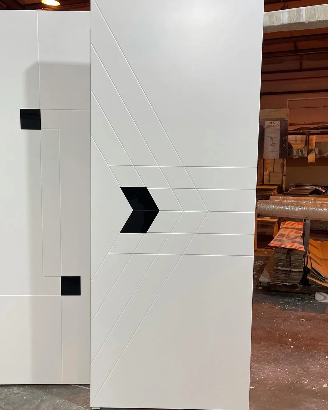 درب MDF سفید مدرن مدل هندسی مشکی کد 30649