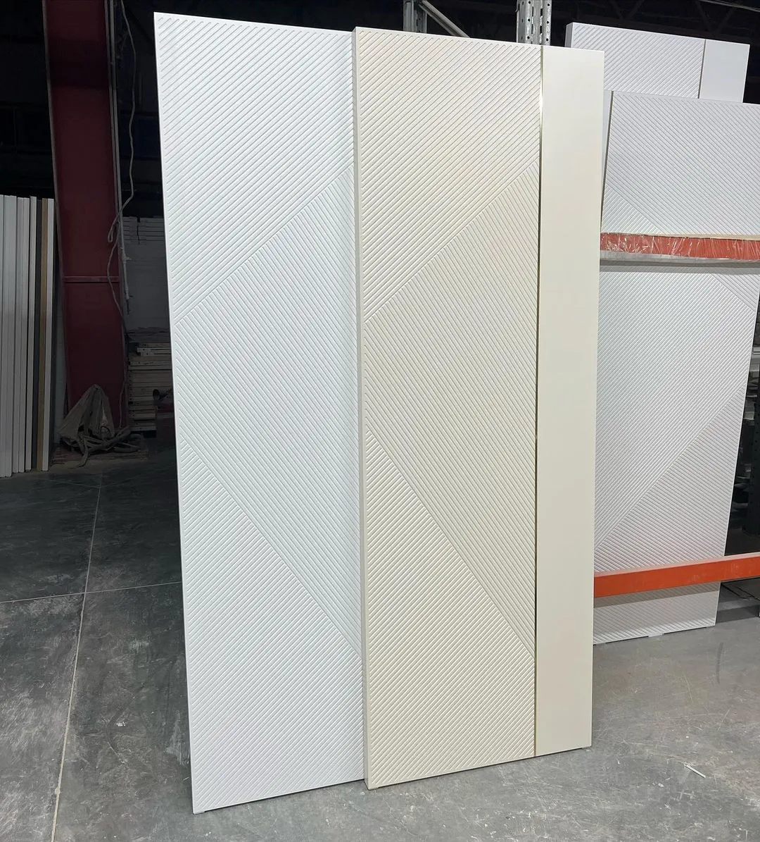 - طراحی: بافت مورب مدرن با نوار عمودی صاف در یک سمت درب