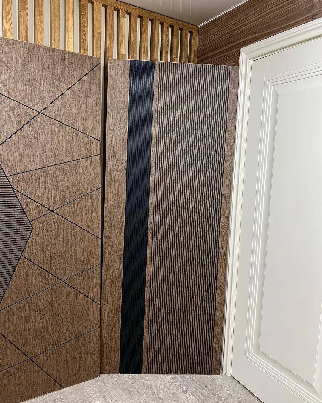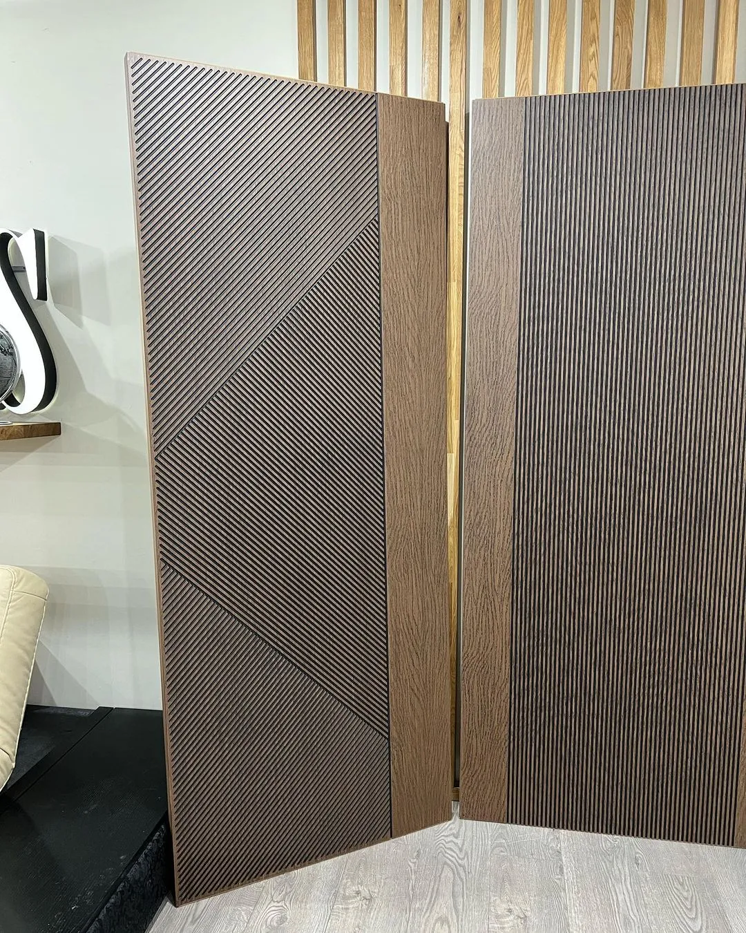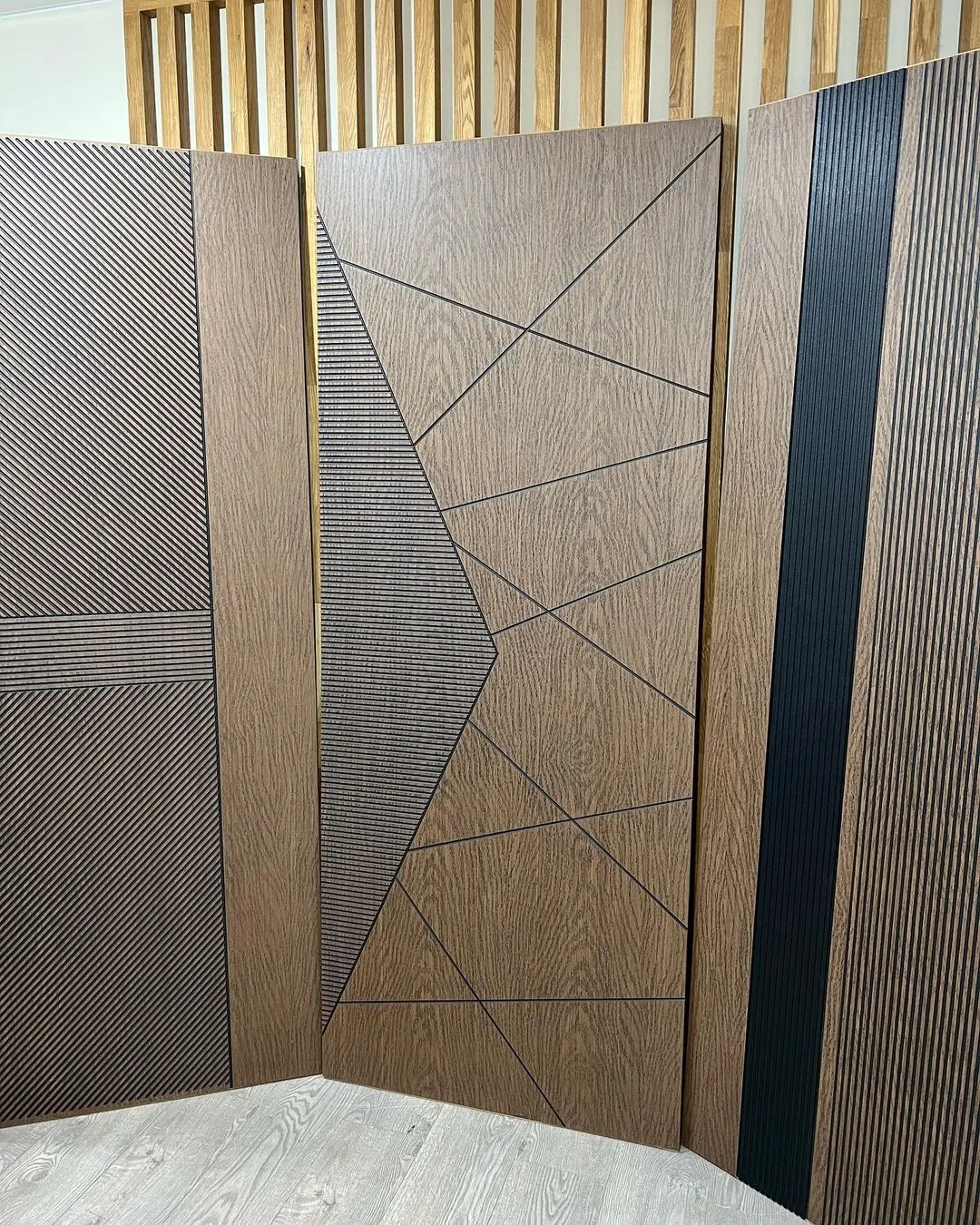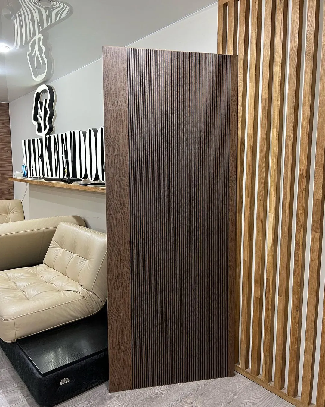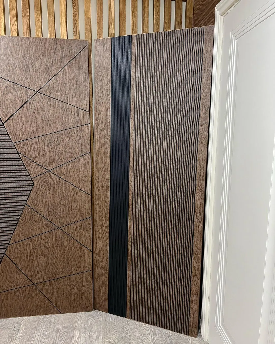 درب چوبی مدرن طرح شیار مشکی مدل گردویی کد 30290