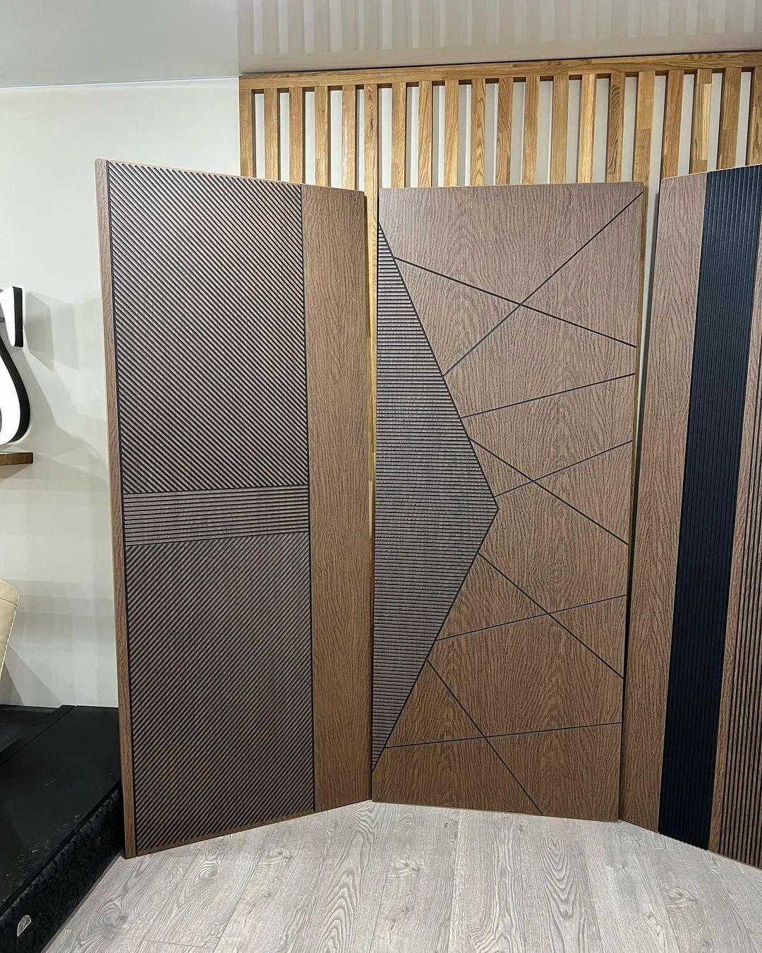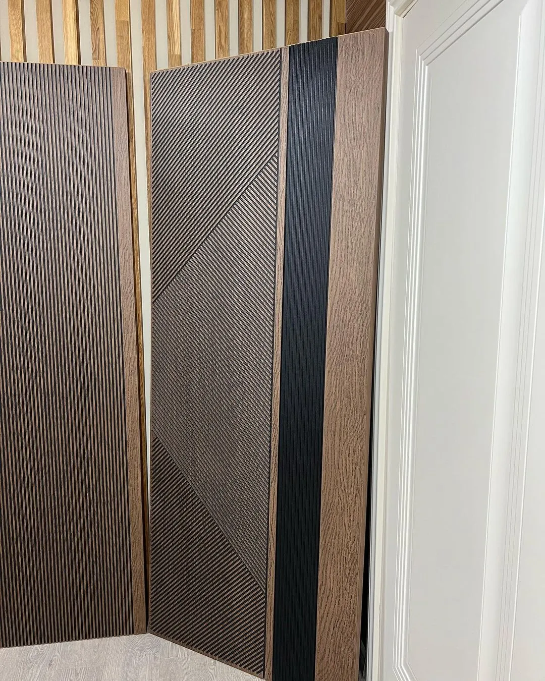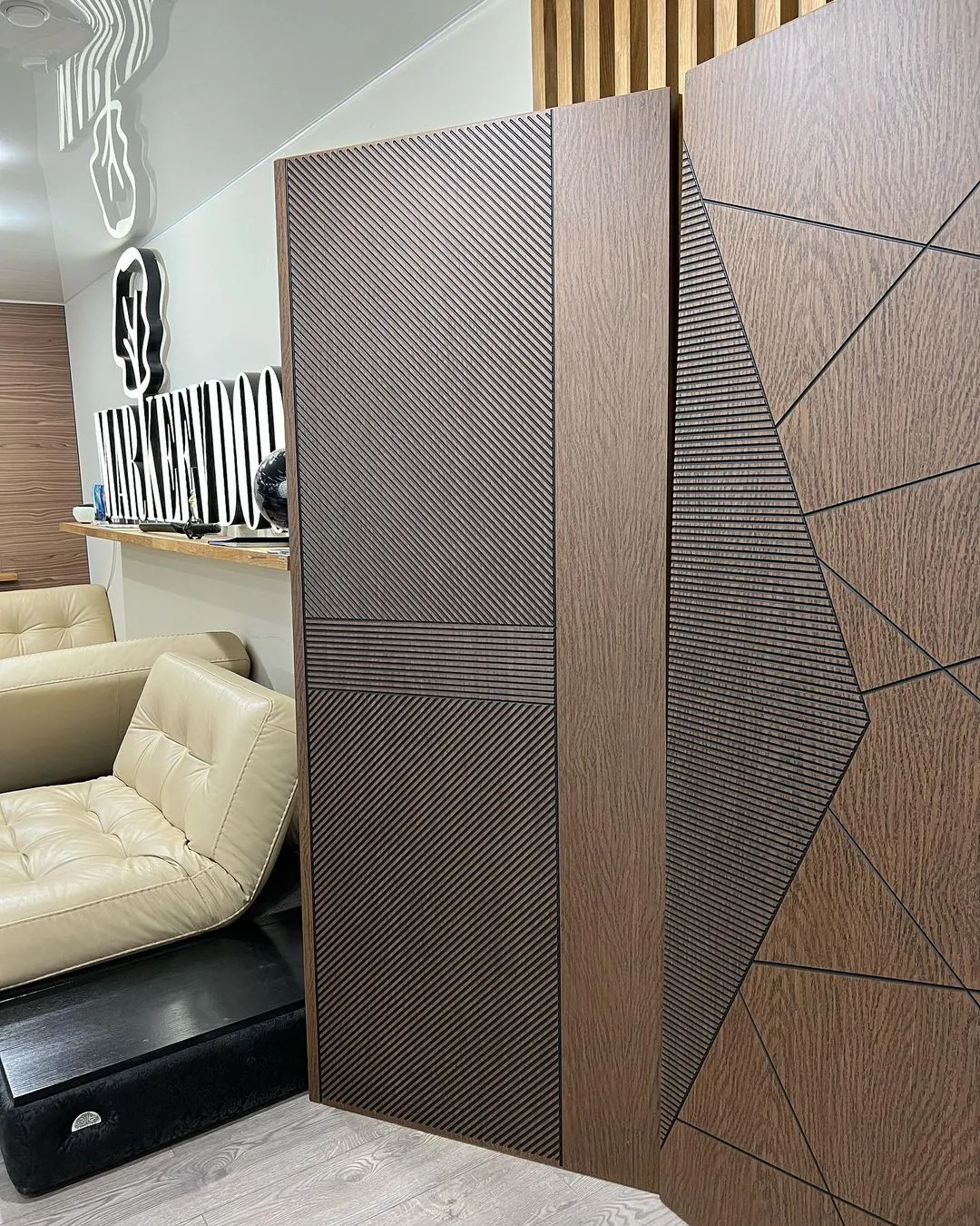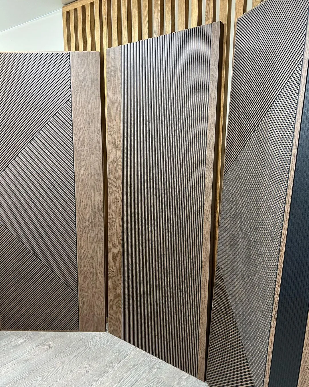 درب چوبی مدرن طرح شیار مشکی مدل گردویی کد 30290