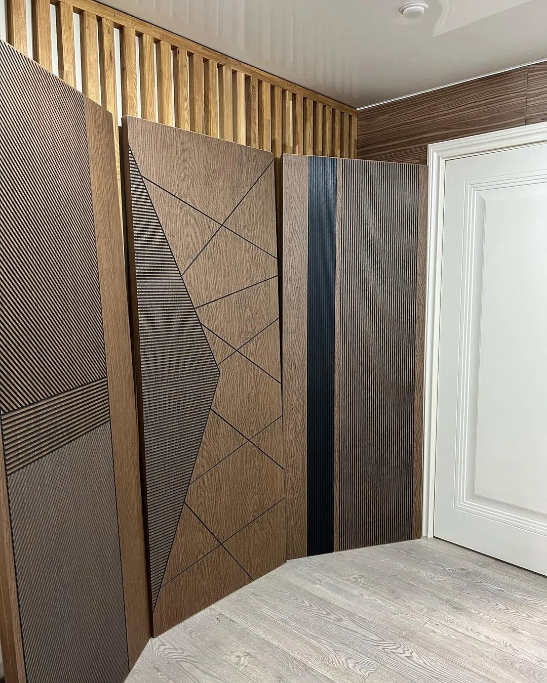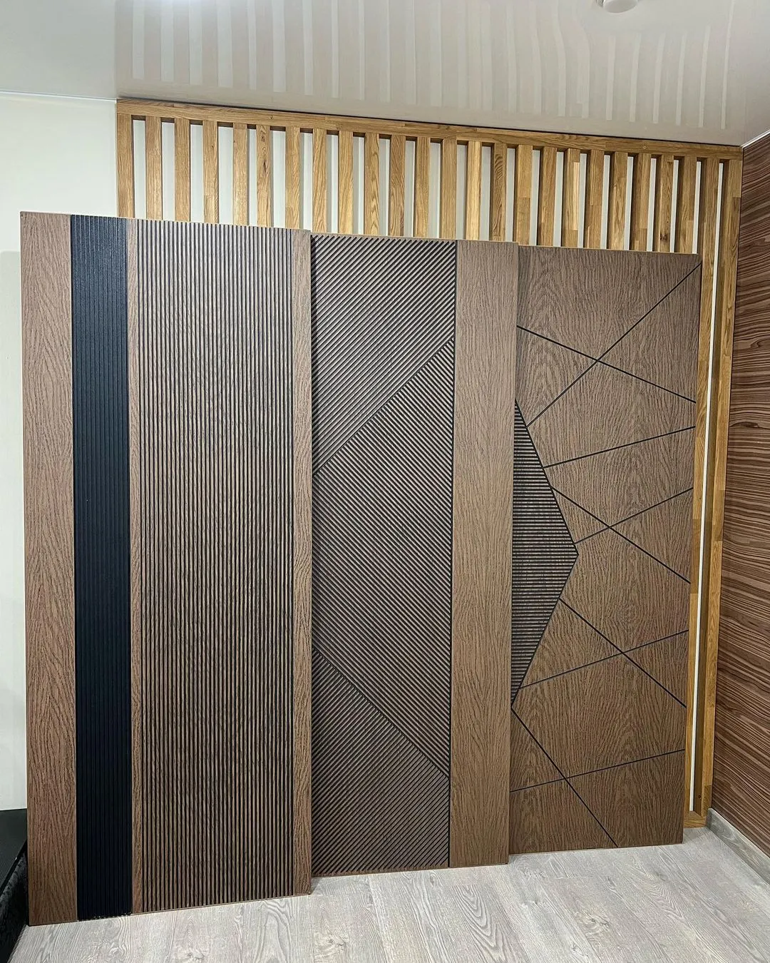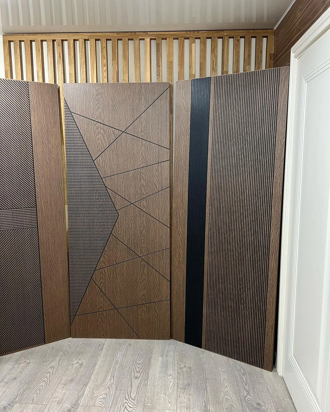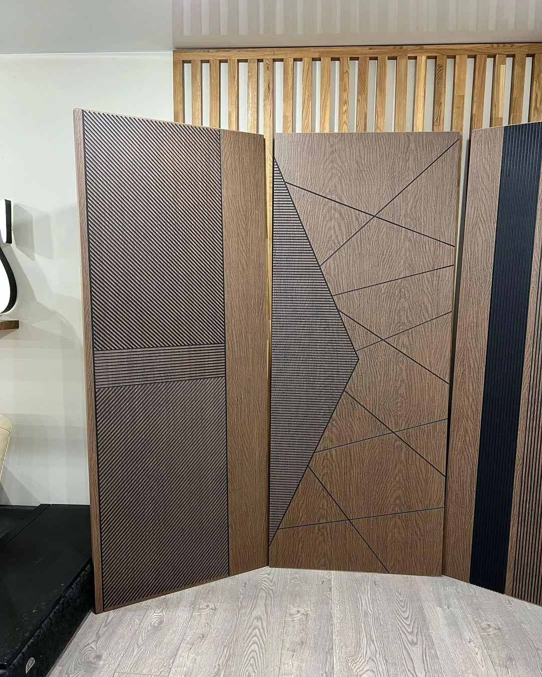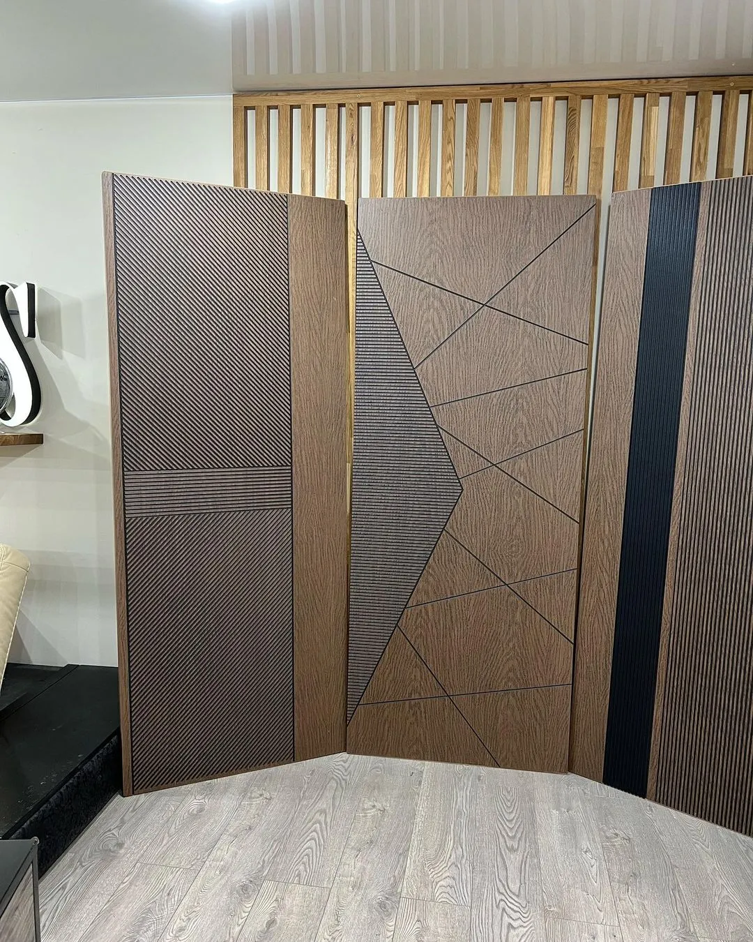درب چوبی مدرن طرح شیار مشکی مدل گردویی کد 30290