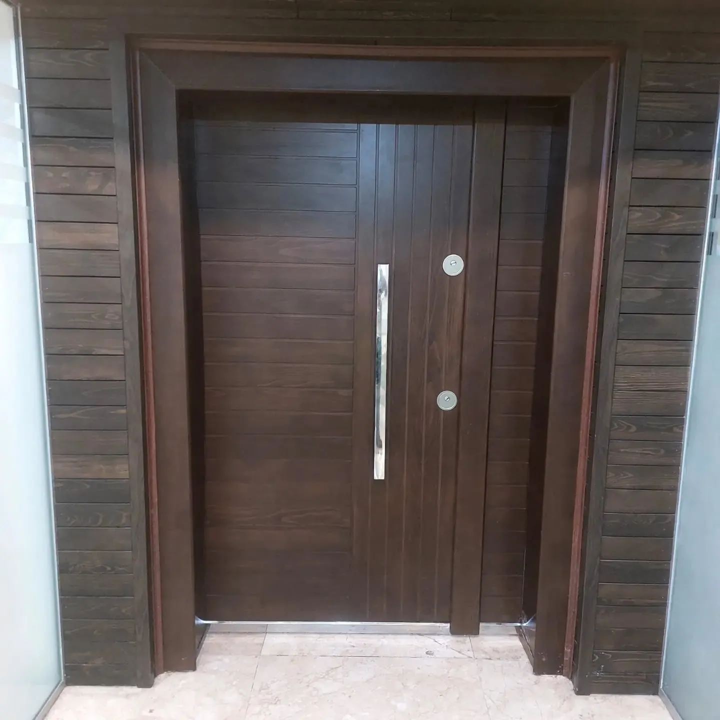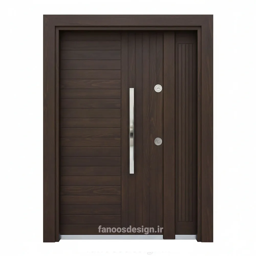 این درب برای ورودی ساختمانهای لوکس، پروژههای معماری معاصر، دکوراسیون داخلی مدرن و فضاهای مینیمال طراحی شده است. ترکیب چوب و فلز، حس امنیت و زیبایی را همزمان منتقل میکند.