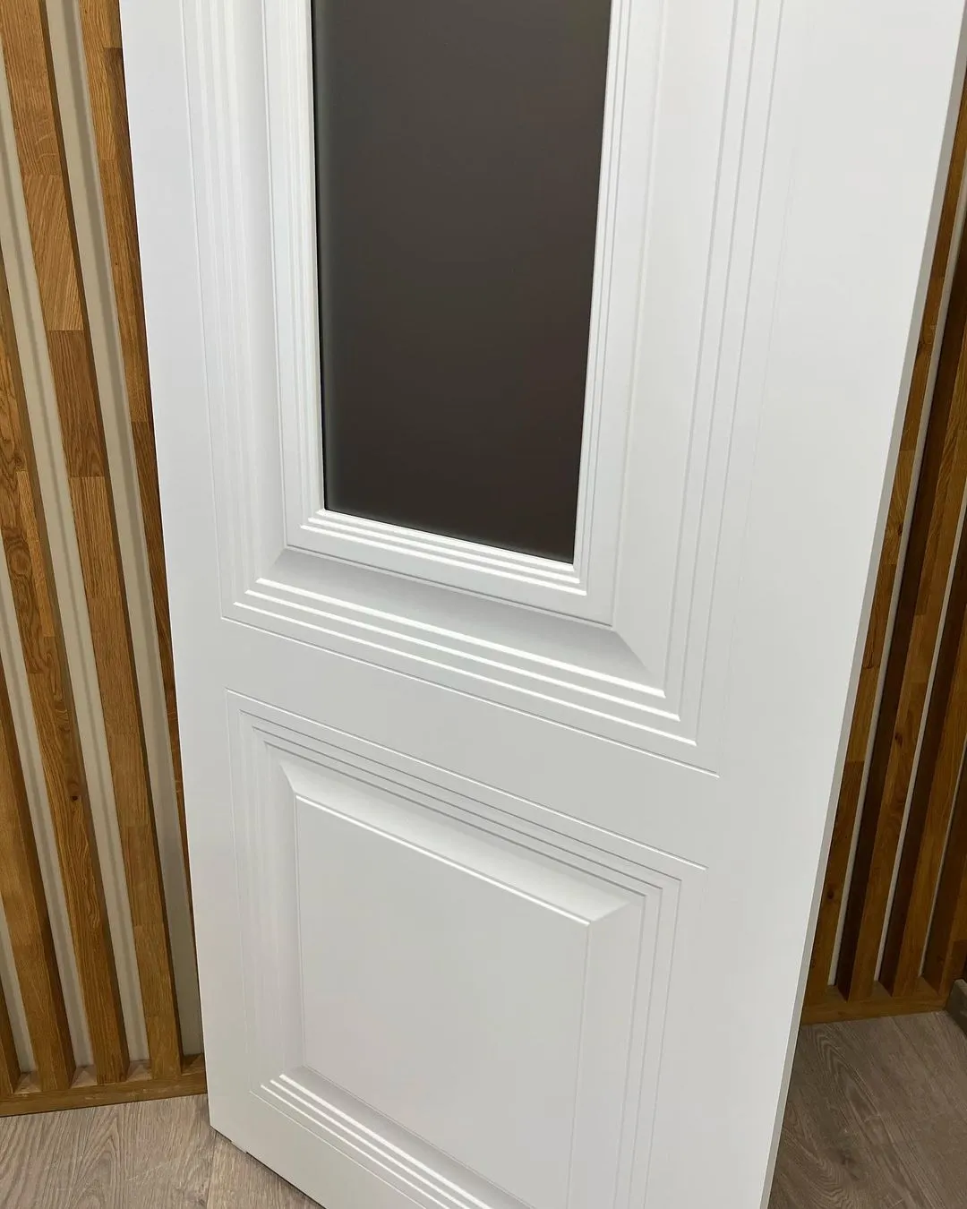 این درب داخلی با رنگ سفید خالص و طراحی کلاسیک مدرن، انتخابی بینظیر برای فضاهای لوکس و شیک است. پنل شیشهای مات در بخش بالایی، نور را بهصورت ملایم عبور میدهد و حس آرامش و زیبایی را به محیط میبخشد.