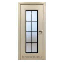 این مدل درب شیشهای مشبک برای خانههای مدرن و لوکس طراحی شده است. با عبور ملایم نور از شیشه مات، فضا روشنتر میشود بدون آنکه شفافیت کامل داشته باشد. وجود فریم مشکی در ترکیب با رنگ سفید درب، تضادی چشمنواز ایجاد میکند که با مبلمان و دیوارهای روشن هماهنگی بالایی دارد.