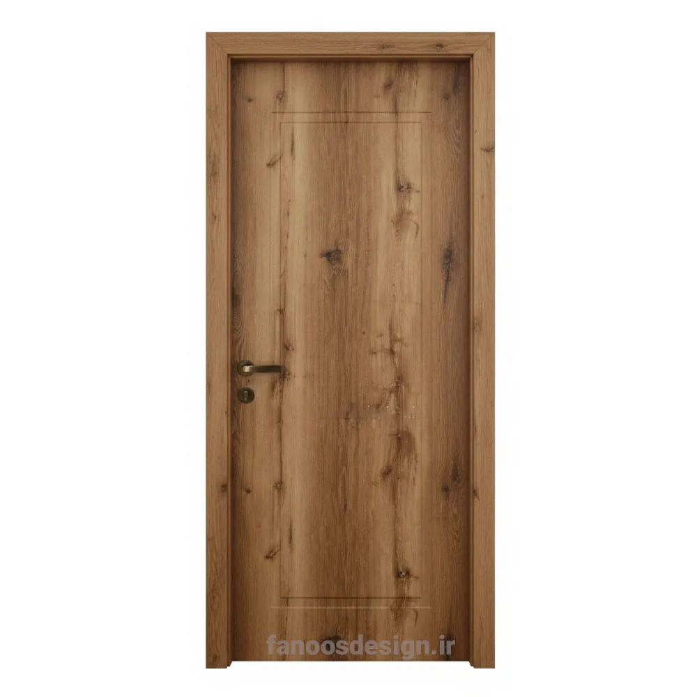 درب اتاقی چوبی طرح بلوط با رنگ گرم و طبیعی خود، فضای داخلی خانه را به محیطی آرام و دلنشین تبدیل میکند.